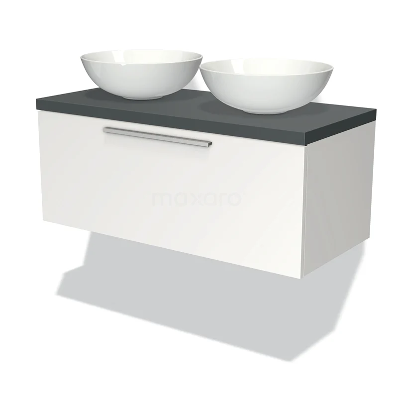Badmöbel für Waschtischunterschrank mit Konsole 100cm Modulo Plato Matt Weiß 1 Schublade Flach Dunkelgrau Platte