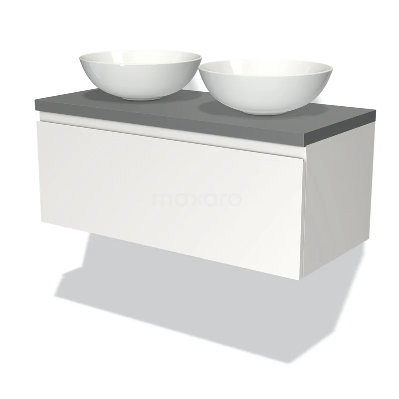 Badmöbel für Waschtischunterschrank mit Konsole 100cm Modulo Plato Matt Weiß 1 Schublade Grifflos Mittelgrau Platte