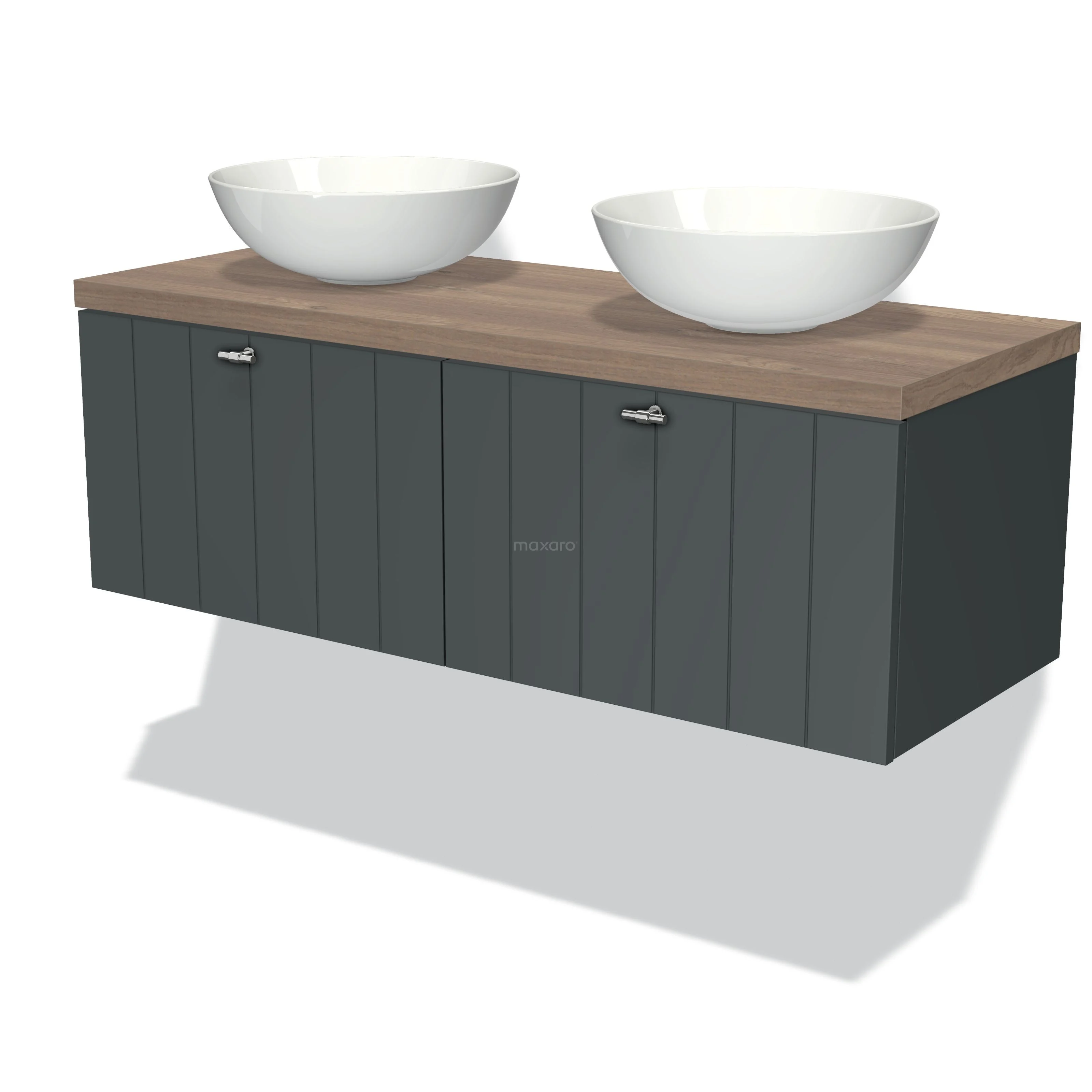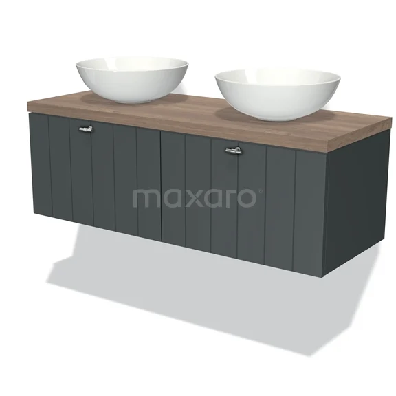 Badmöbel für Waschtischunterschrank mit Konsole 120cm Modulo Plato Dunkelgrau 2 Schubladen Lamelle Mittelbraune Eiche Platte