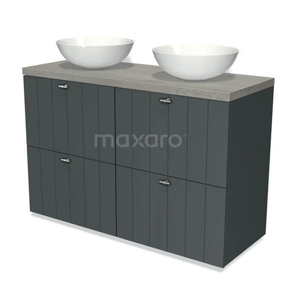 Modulo Plato Badmöbel mit Aufsatzwaschbecken | 120 cm Dunkelgrau Lamelle front Graue Eiche blatt 4 hohe Schubladen