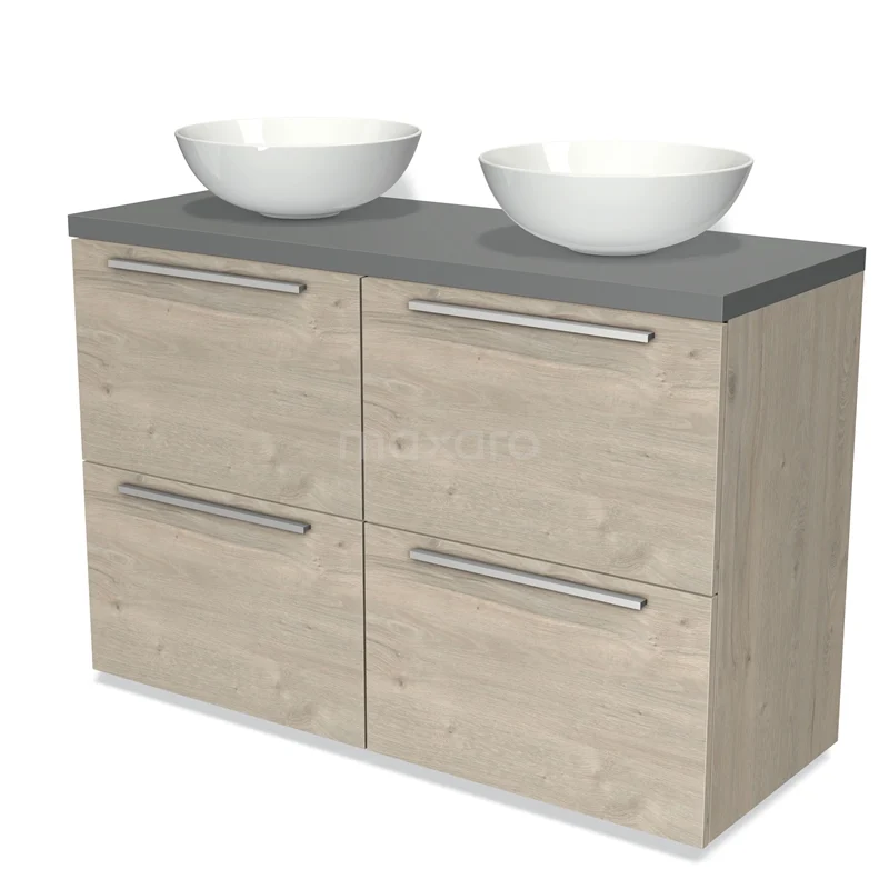 Badmöbel für Waschtischunterschrank mit Konsole 120cm Modulo Plato Hellgraue Eiche 4 hohe Schubladen Flach Mittelgraue Platte