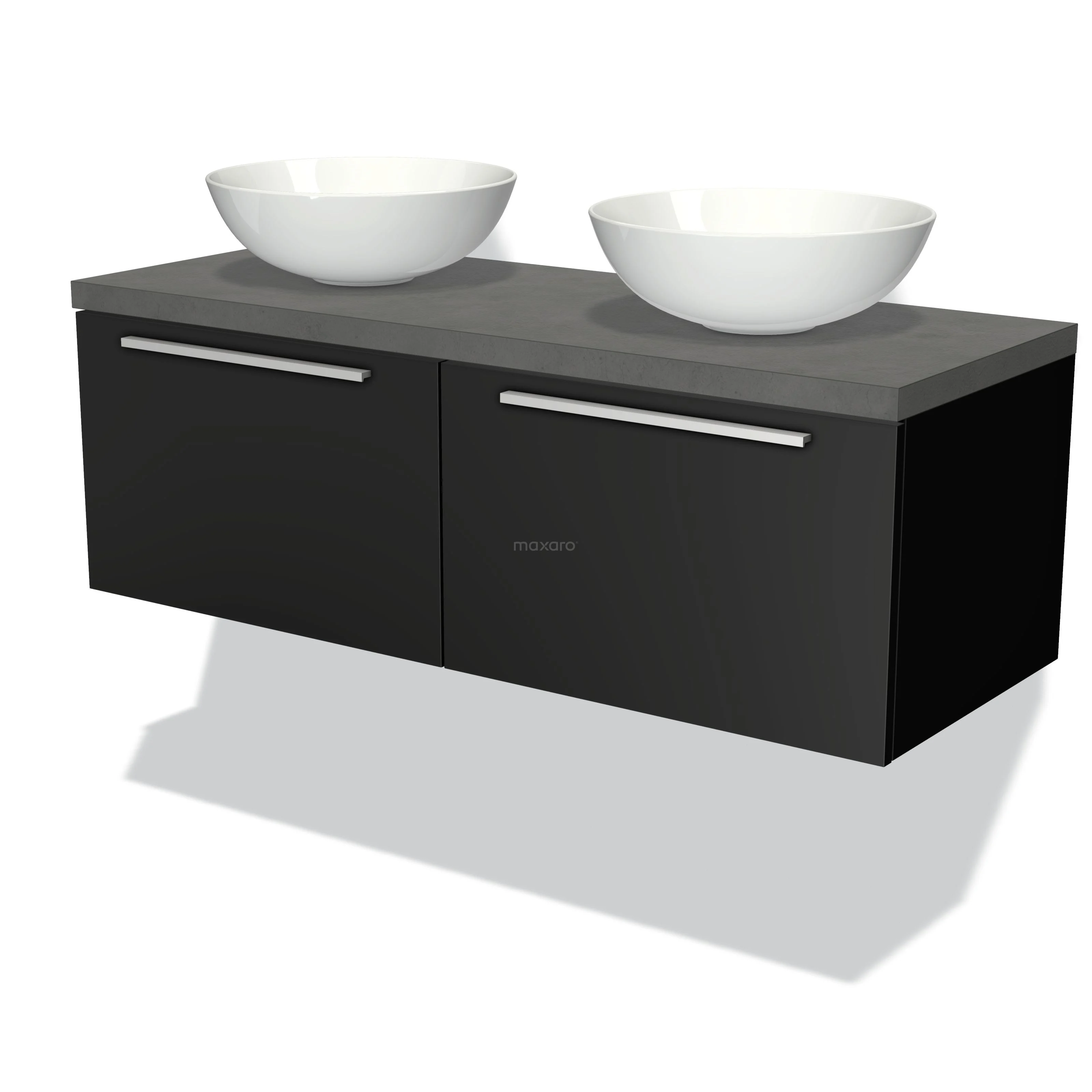 Badmöbel für Waschtischunterschrank mit Konsole 120cm Modulo Plato Matt Schwarz 2 Schubladen Flach Dunkelgrau Beton Platte