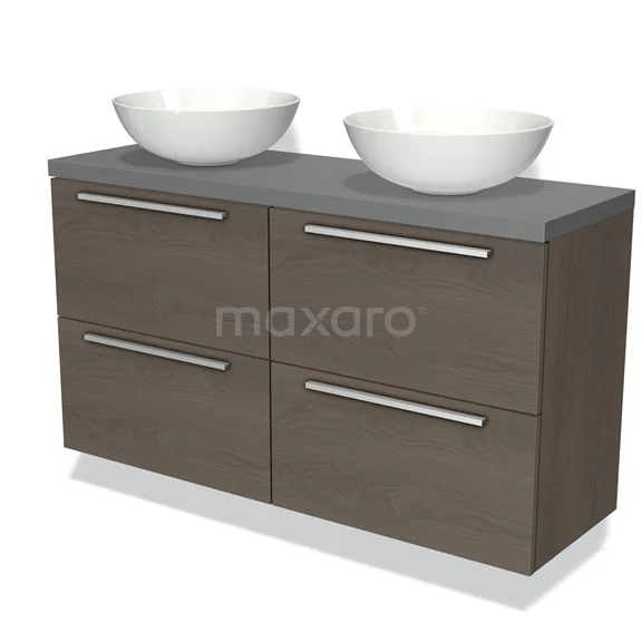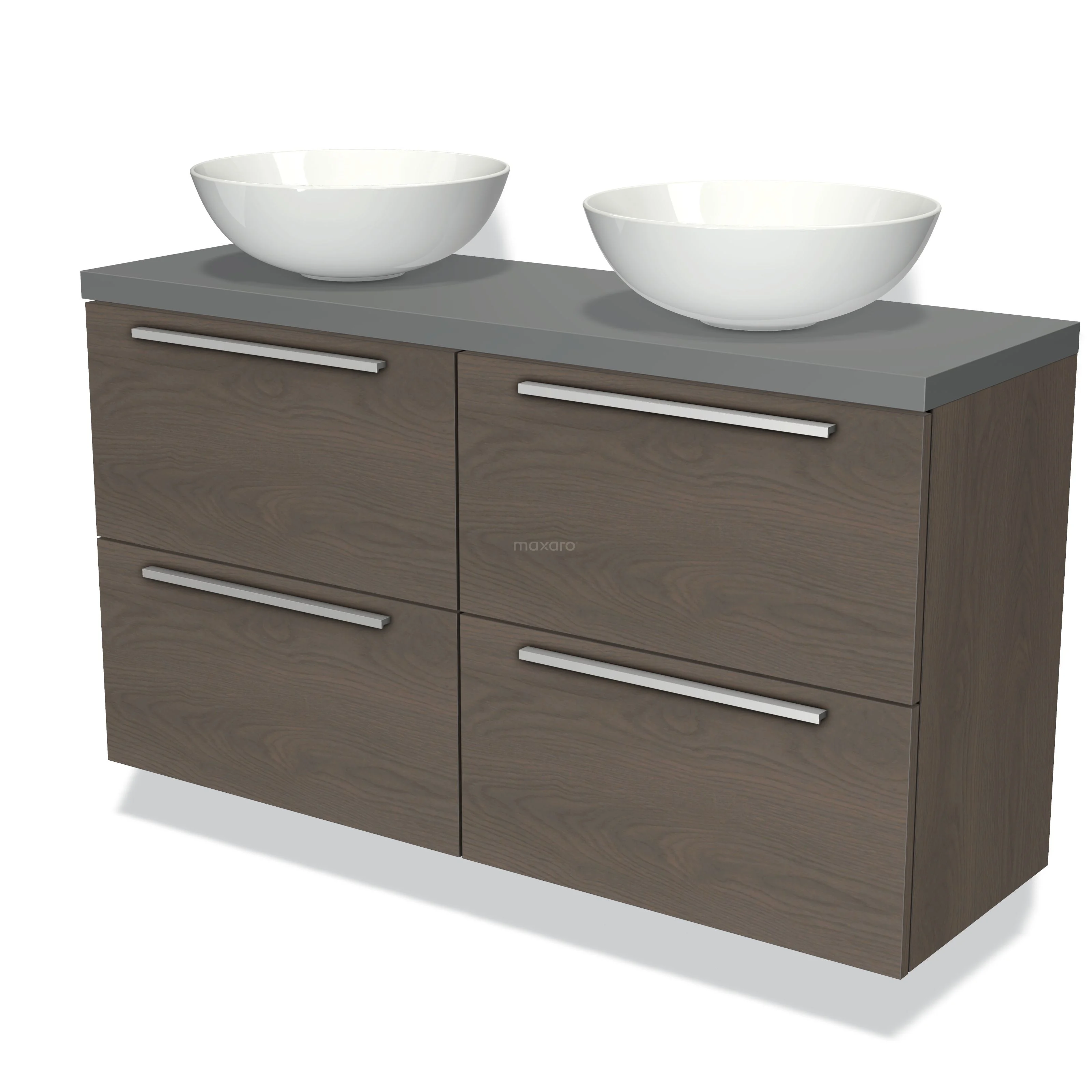 Badmöbel für Waschtischunterschrank mit Konsole 120cm Modulo Plato Slim dunkelbraune Eiche 4 Schubladen Flach Mittelgrau Platte