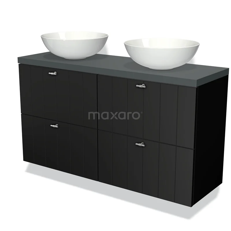 Badmöbel für Waschtischunterschrank mit Konsole 120cm Modulo Plato Slim Matt Schwarz 4 Schubladen Latten Dunkelgrau Platte