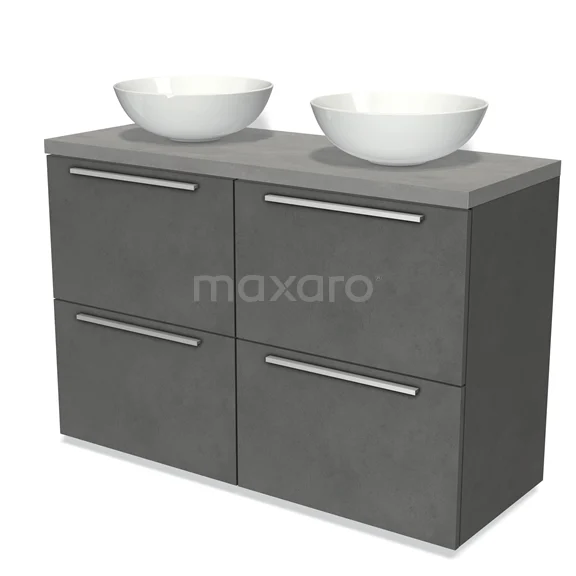 Badmöbel für Waschtischunterschrank mit Konsole 120cm Modulo Platte Dunkelgrau Beton 4 hohe Schubladen Flach hellgrauer Beton Platte
