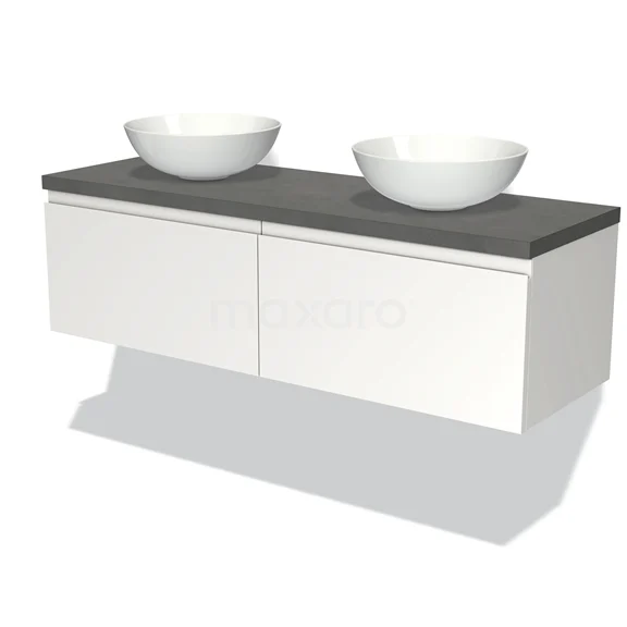 Badmöbel für Waschtischunterschrank mit Konsole 140cm Modulo Plato Matt Weiß 2 Schubladen Grifflos Dunkelgrauer Beton Platte
