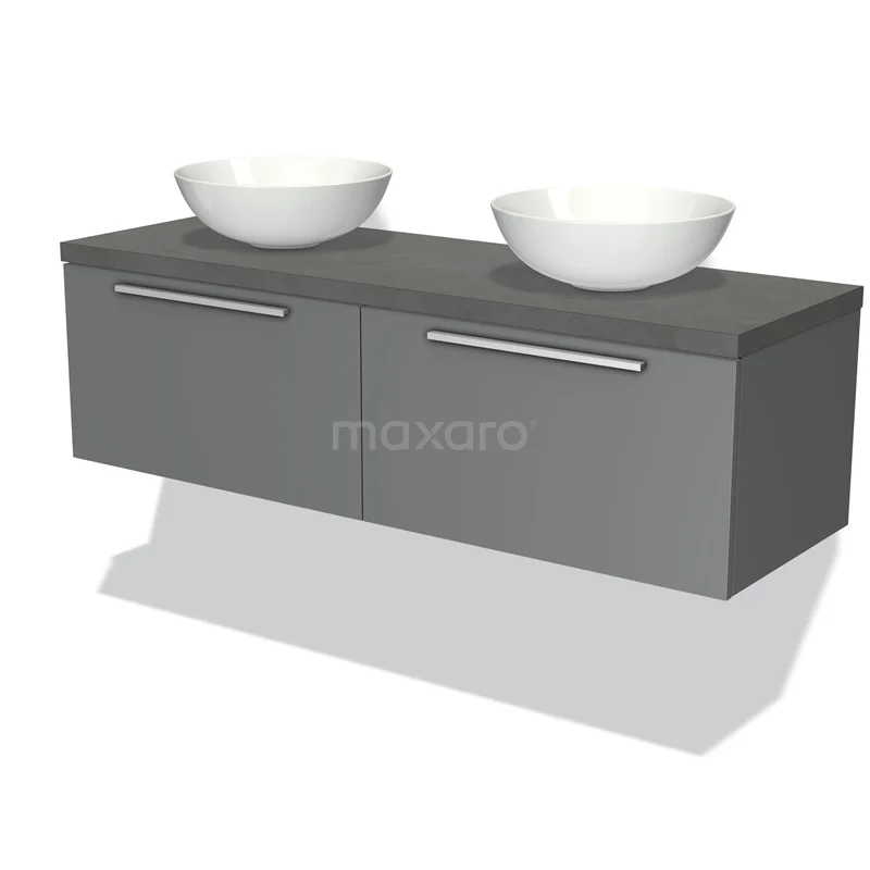 Badmöbel für Waschtischunterschrank mit Konsole 140cm Modulo Plato Mittelgrau 2 Schubladen Flach Dunkelgrauer Beton Platte