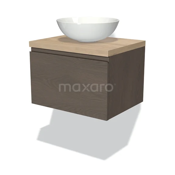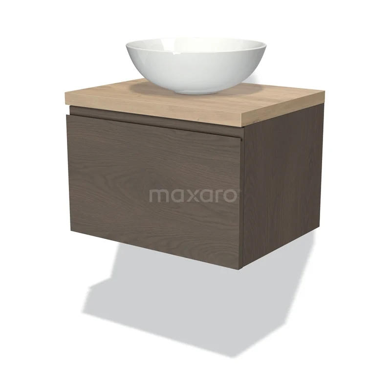 Badmöbel für Waschtischunterschrank mit Konsole 60cm Modulo Plato dunkelbraune Eiche 1 Schublade grifflos hellbraune Eiche Platte