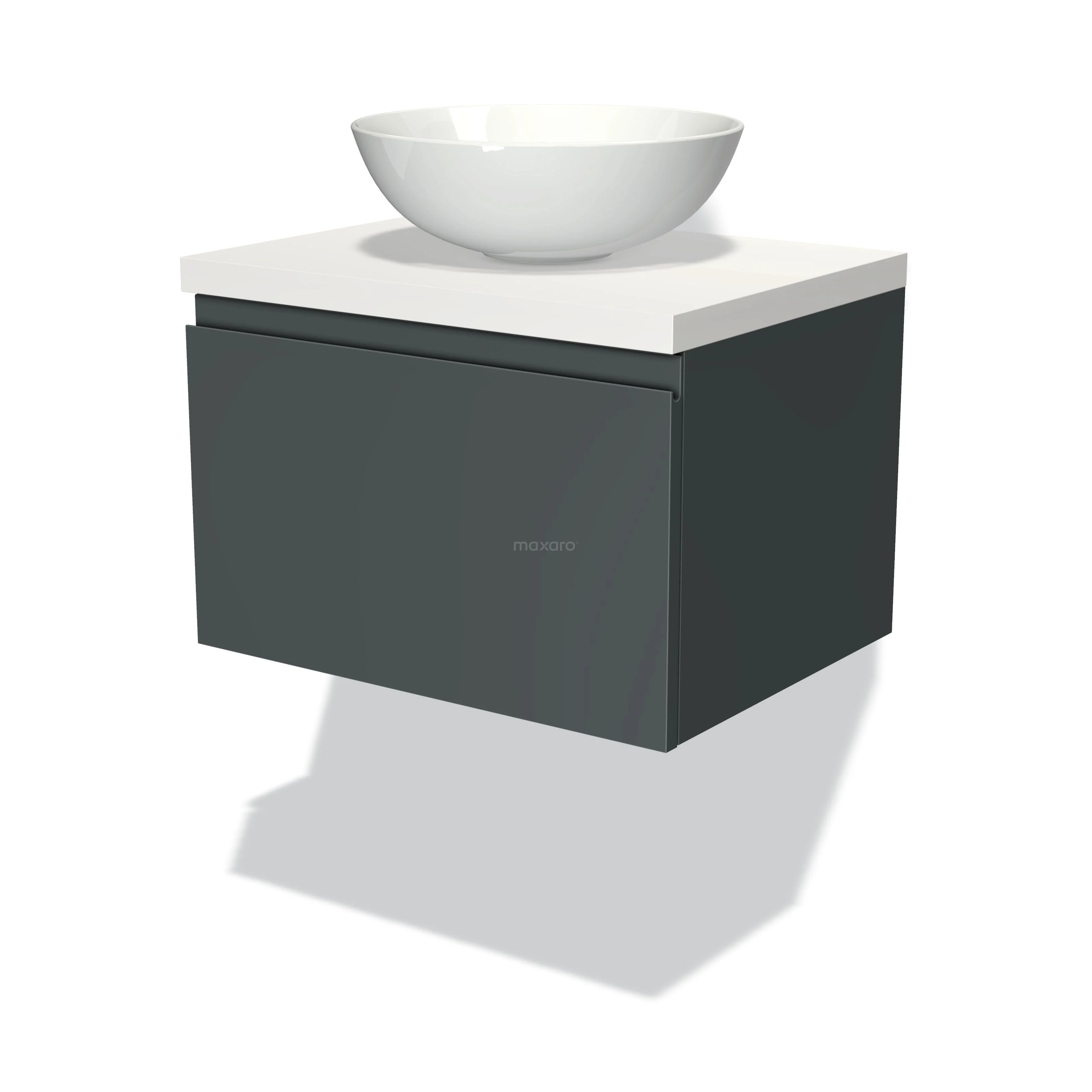 Badmöbel für Waschtischunterschrank mit Konsole 60cm Modulo Plato Dunkelgrau 1 Schublade grifflos Matt Weiß Platte