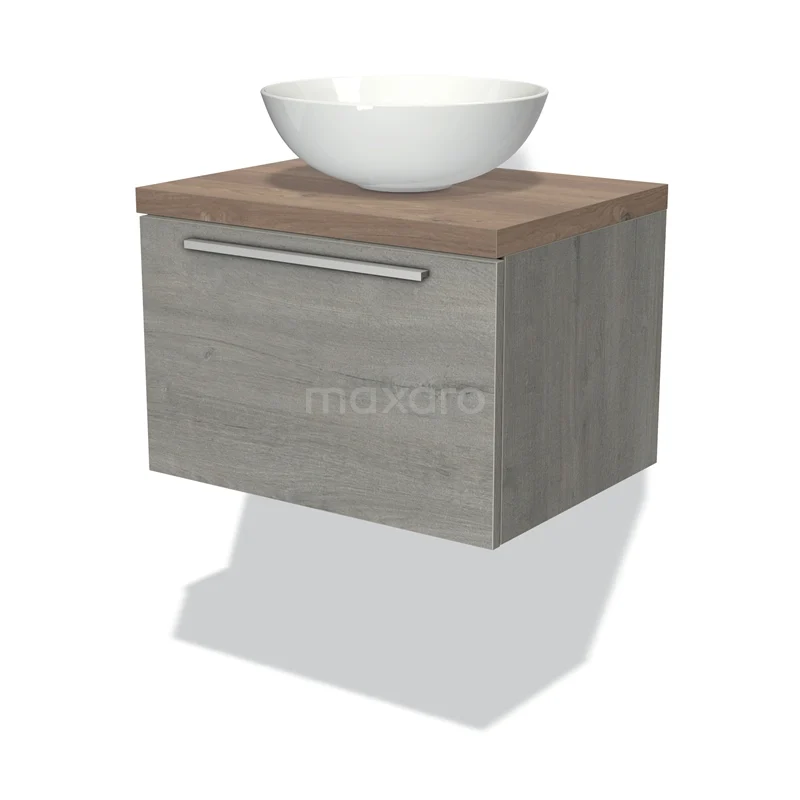 Badmöbel für Waschtischunterschrank mit Konsole 60cm Modulo Plato Grau Eiche 1 Schublade Flach Mittelbraune Eiche Platte
