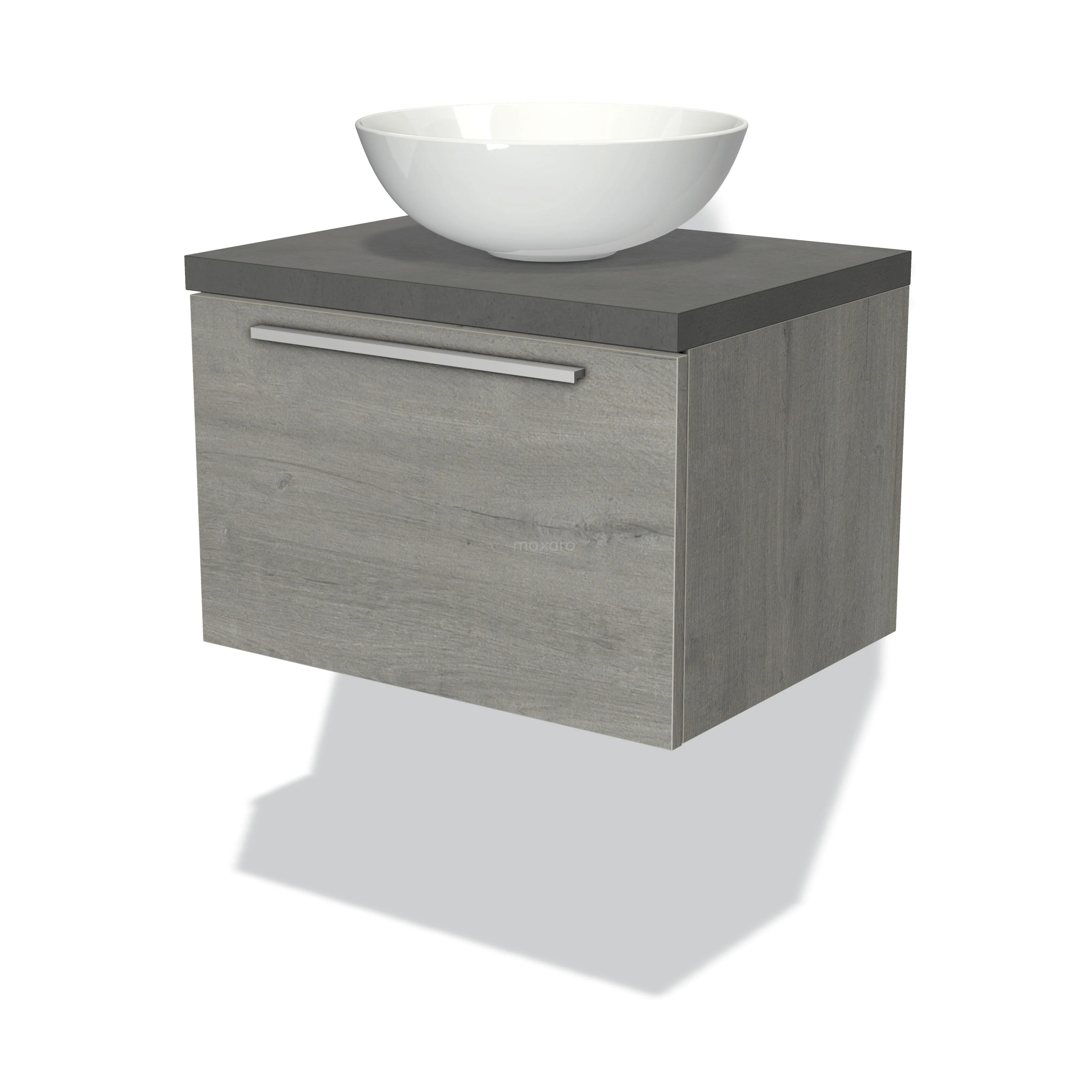 Badmöbel für Waschtischunterschrank mit Konsole 60cm Modulo Plato Graue Eiche 1 Schublade Flach Dunkelgrauer Beton Platte