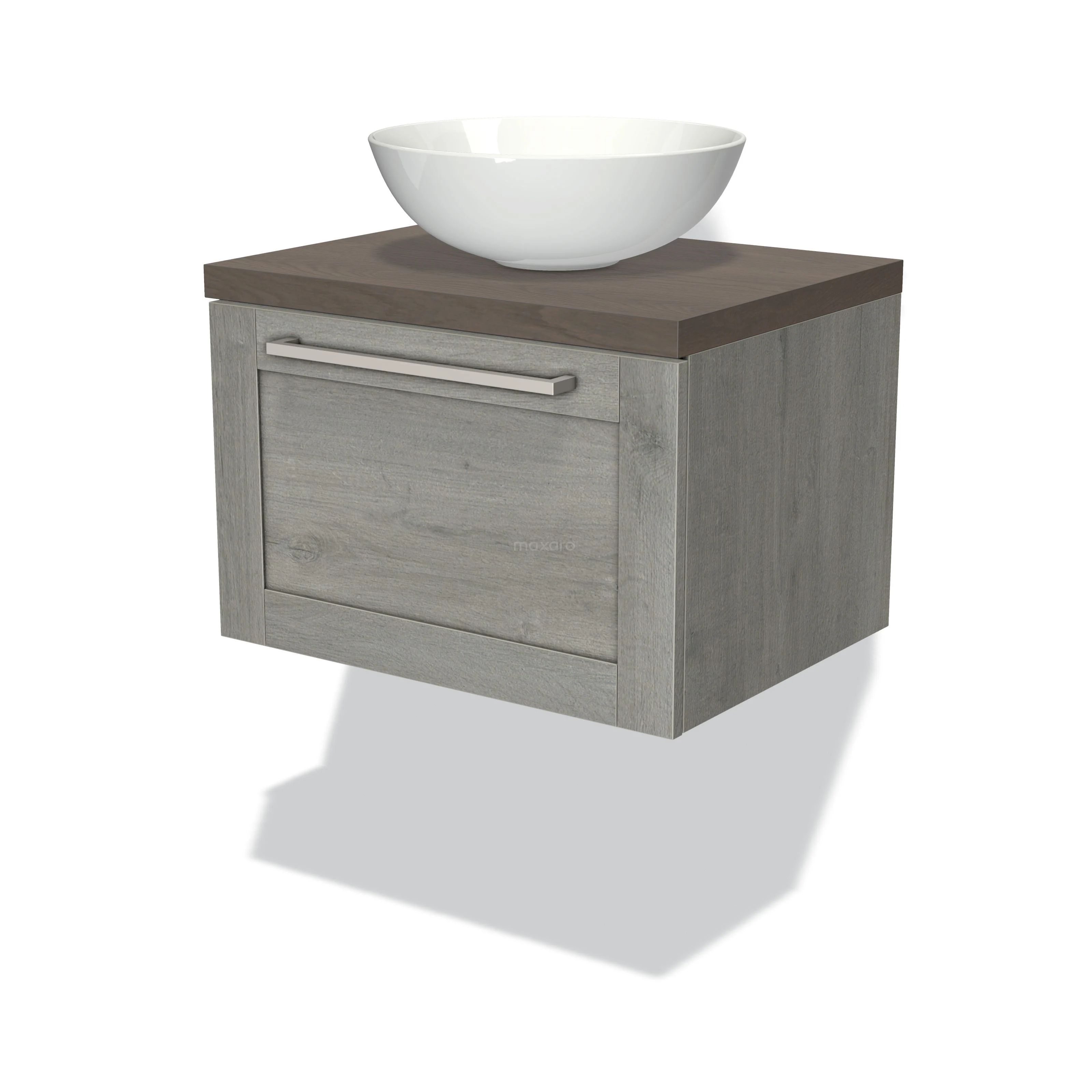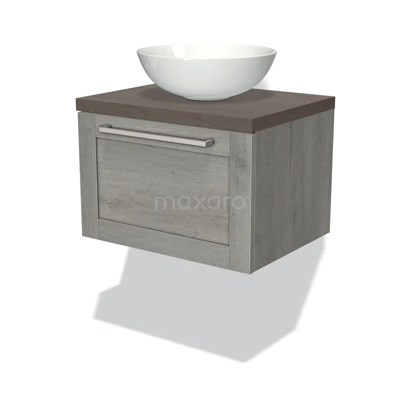 Badmöbel für Waschtischunterschrank mit Konsole 60cm Modulo Plato Graue Eiche 1 Schublade Rahmen Dunkelbraune Eiche Platte