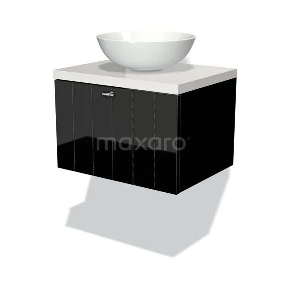 Badmöbel für Waschtischunterschrank mit Konsole 60cm Modulo Plato Hochglanz Schwarz 1 Schublade Lamelle Hochglanz Weiß Platte