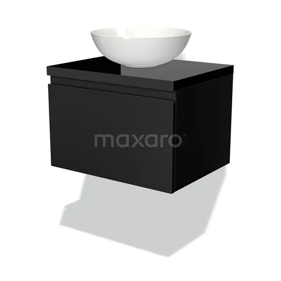 Badmöbel für Waschtischunterschrank mit Konsole 60cm Modulo Plato Matt Schwarz 1 Schublade Grifflos Hochglanz Schwarz Platte