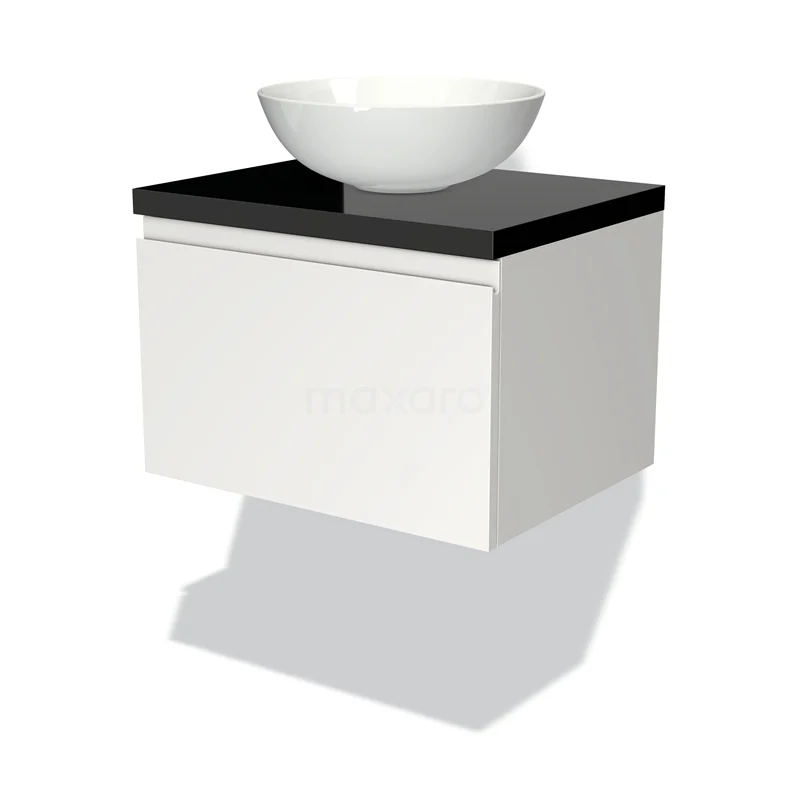 Badmöbel für Waschtischunterschrank mit Konsole 60cm Modulo Plato Matt Weiß 1 Schublade Grifflos Hochglanz Platte