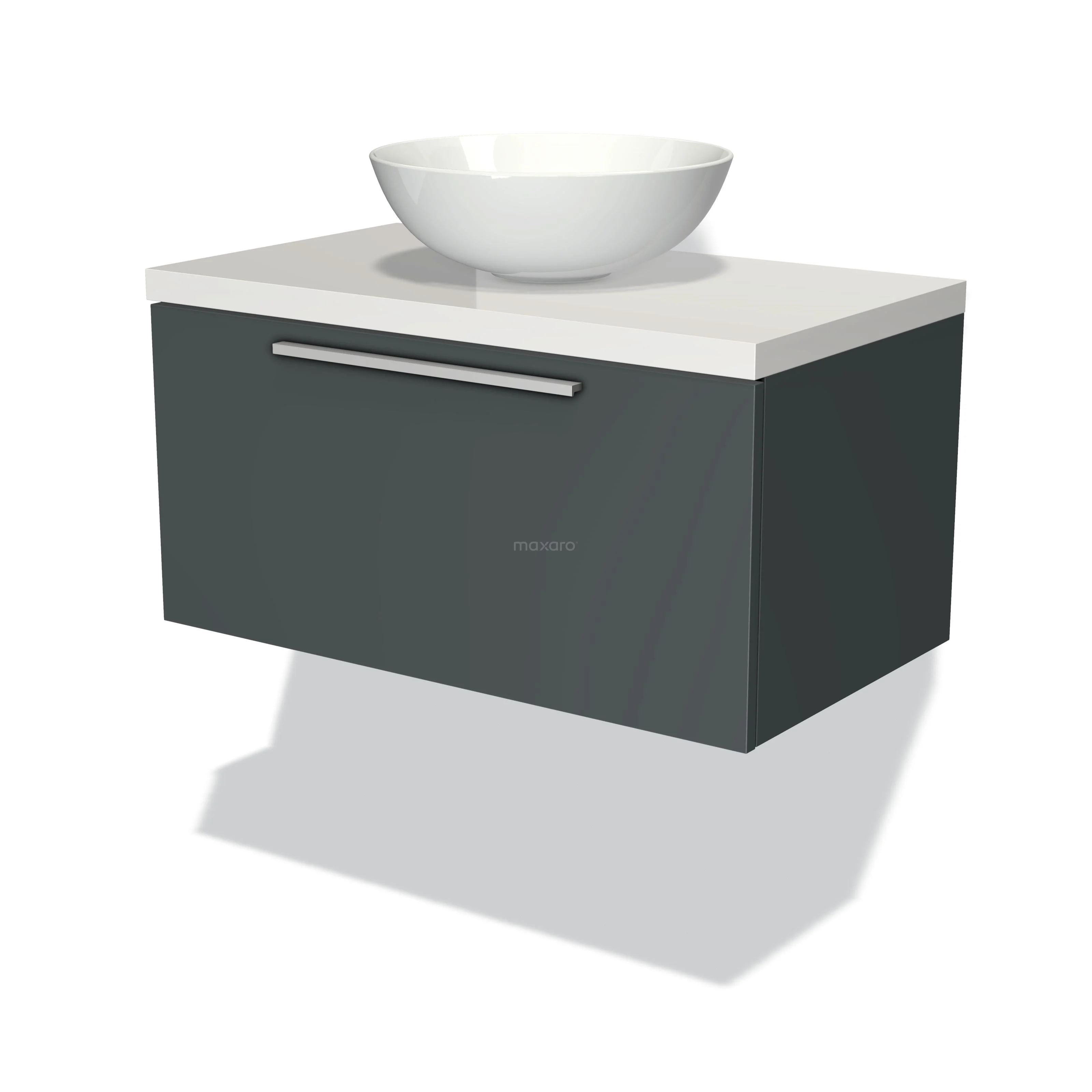Modulo Plato Badmöbel mit Aufsatzwaschbecken | 80 cm Dunkelgrau Flach front Hochglanz Weiß blatt 1 Schublade