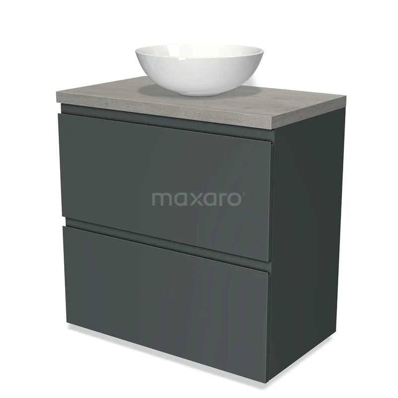 Badmöbel für Waschtischunterschrank mit Konsole 80cm Modulo Plato Dunkelgrau 2 hohe Schubladen Grifflos Graue Eiche Platte