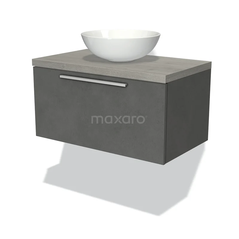 Badmöbel für Waschtischunterschrank mit Konsole 80cm Modulo Plato Dunkelgrauer Beton 1 Schublade Flach Graue Eiche Platte