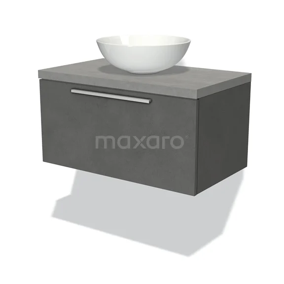 Badmöbel für Waschtischunterschrank mit Konsole 80cm Modulo Plato Dunkelgrauer Beton 1 Schublade Flach Hellgrauer Beton Platte