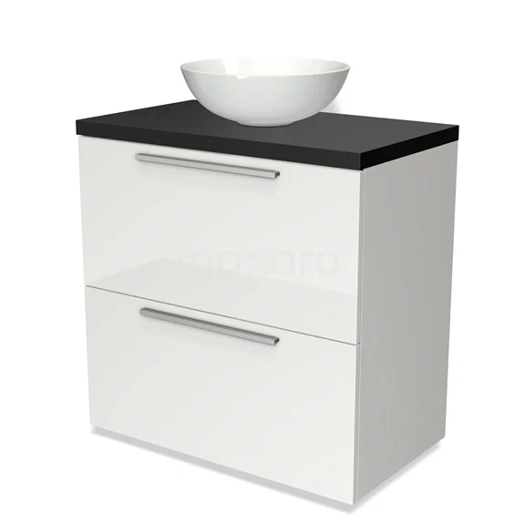Badmöbel für Waschtischunterschrank mit Konsole 80cm Modulo Plato Hochglanz Weiß 2 hohe Schubladen Flach Matt Schwarz Platte