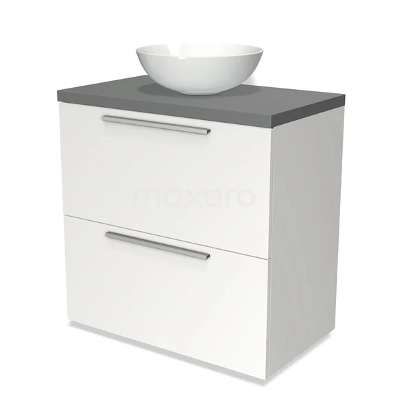 Badmöbel für Waschtischunterschrank mit Konsole 80cm Modulo Plato Matt Weiß 2 hohe Schubladen Flach Mittelgrau Platte