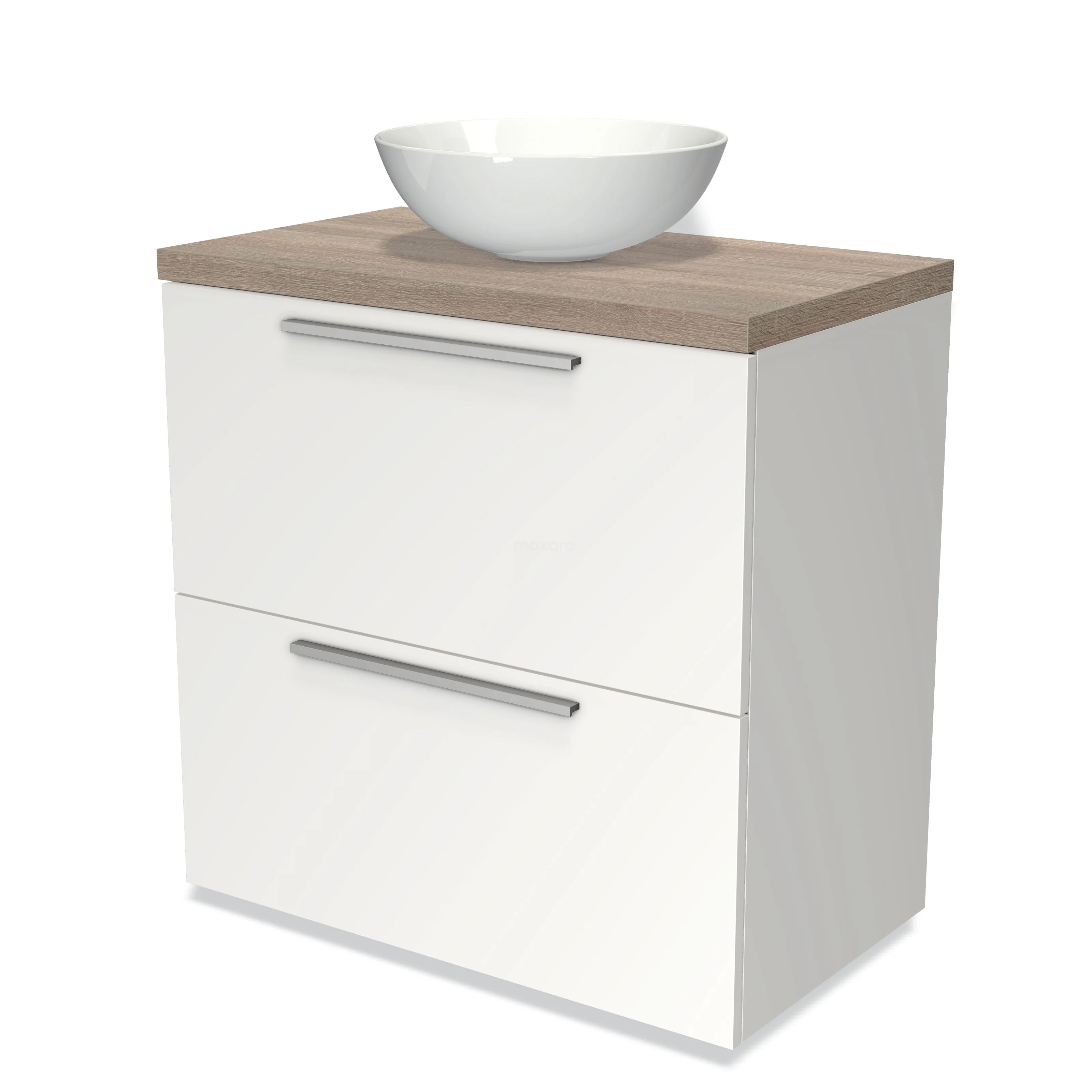 Badmöbel für Waschtischunterschrank mit Konsole 80cm Modulo Plato Matt Weiß 2 hohe Schubladen Flache Platte aus Eiche