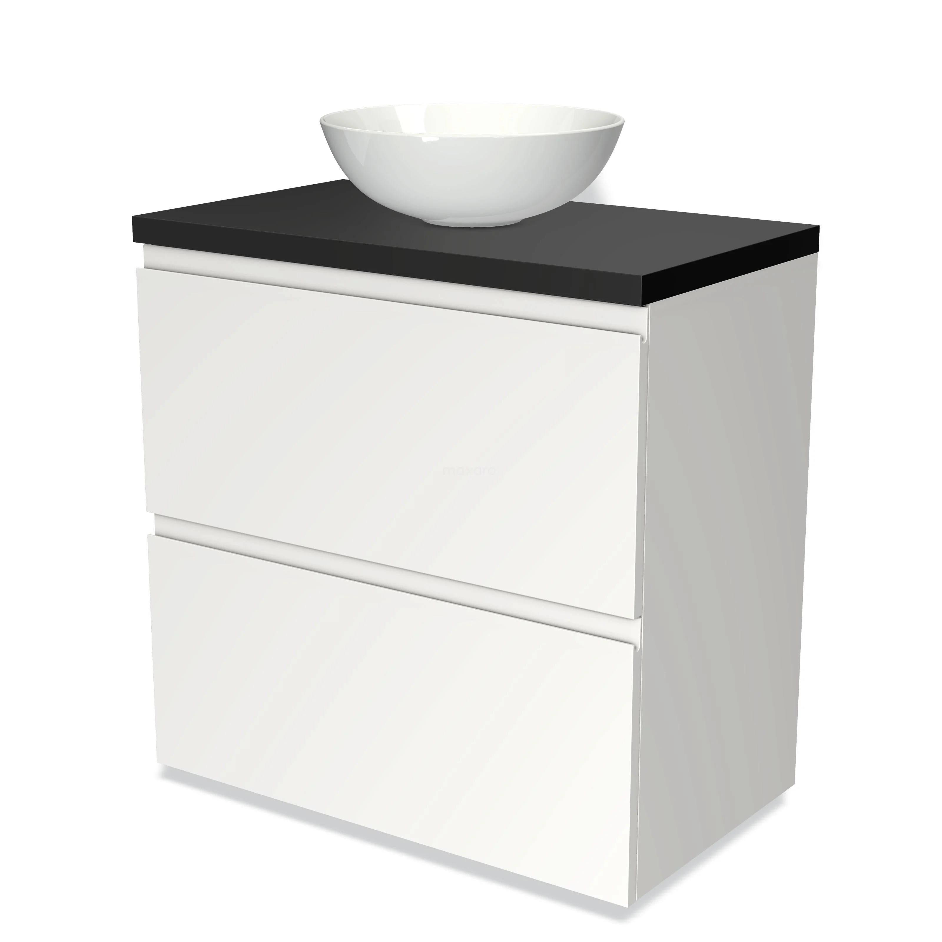 Badmöbel für Waschtischunterschrank mit Konsole 80cm Modulo Plato Matt Weiß 2 hohe Schubladen Grifflos Matt Schwarz Platte