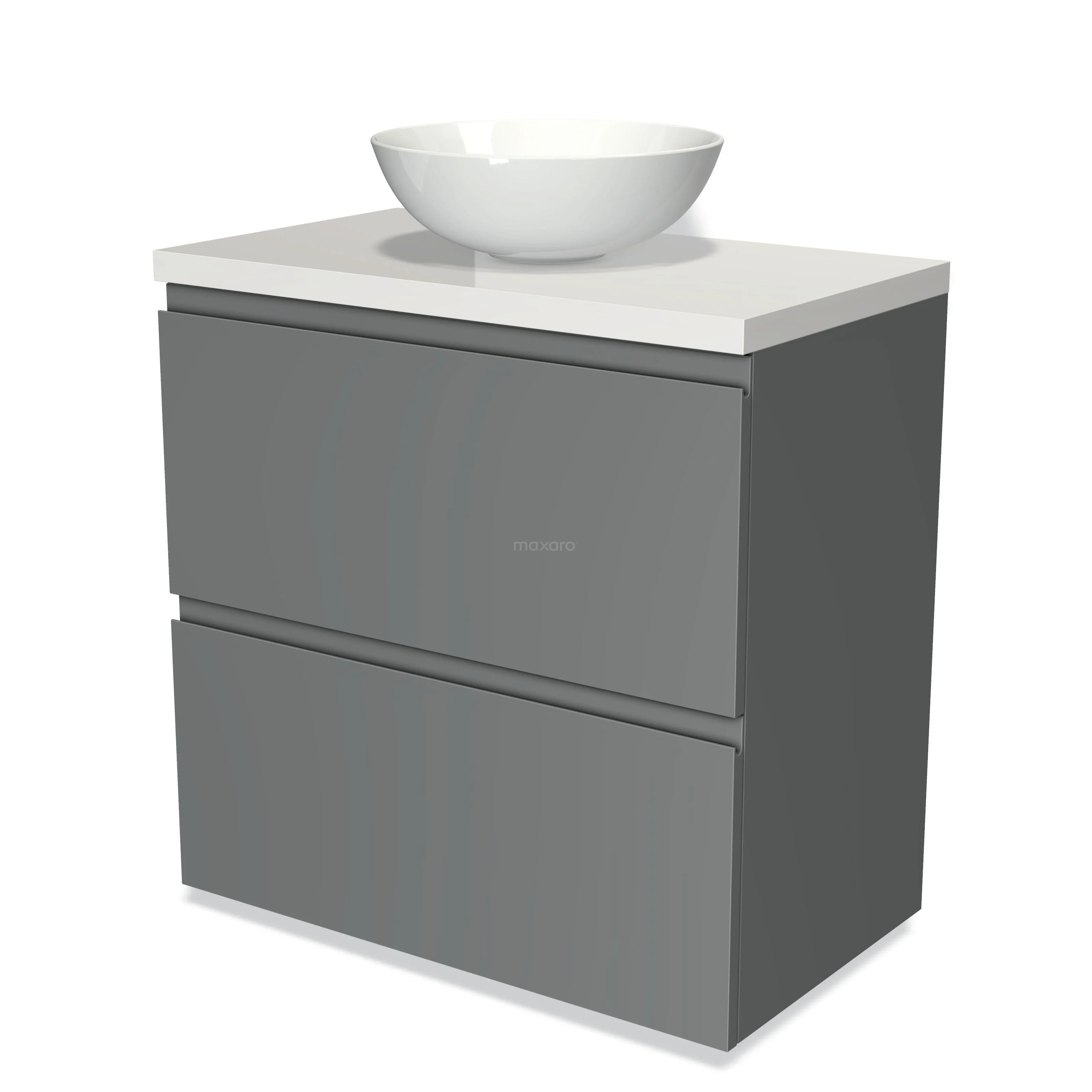 Badmöbel für Waschtischunterschrank mit Konsole 80cm Modulo Plato Mittelgrau 2 hohe Schubladen Grifflos Hochglanz Weiß Platte
