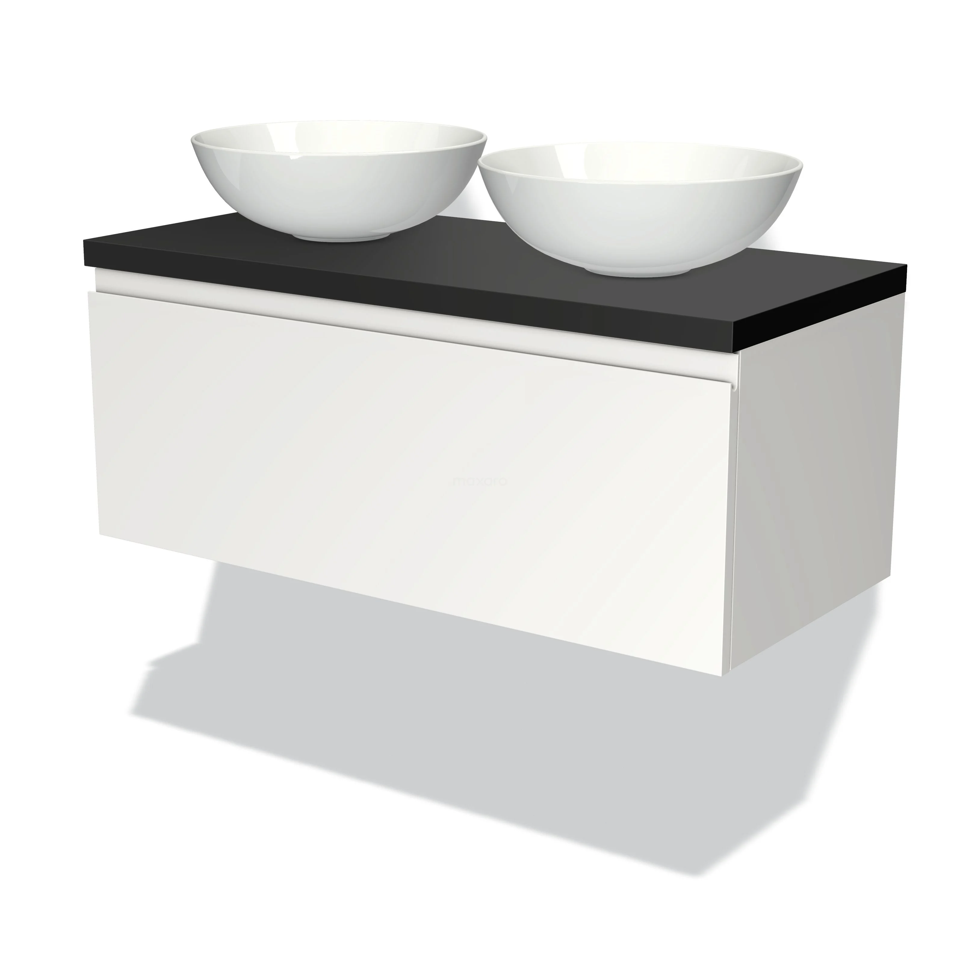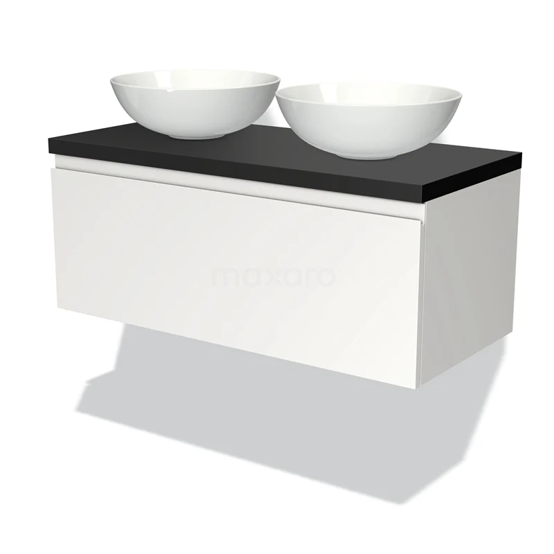 Badmöbel mit Konsole 100cm Modulo Plato Matt Weiß 1 Schublade Grifflos Matt Schwarz Platte