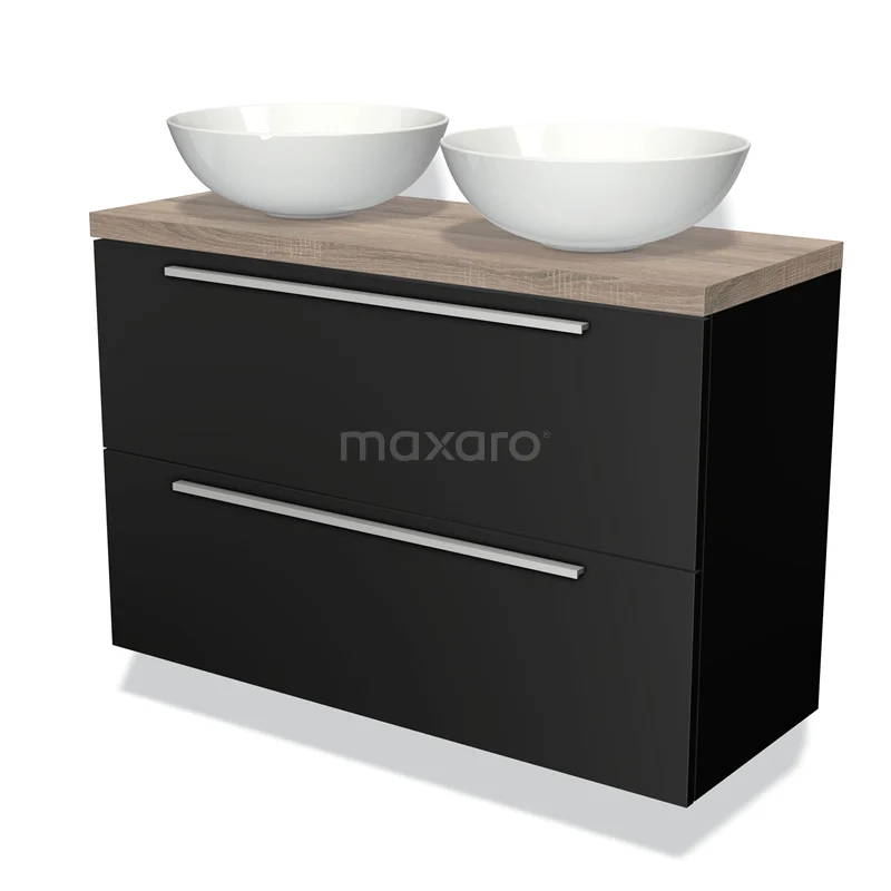 Badmöbel mit Konsole 100cm Modulo Plato Slim Matt Schwarz 2 Schubladen Flach