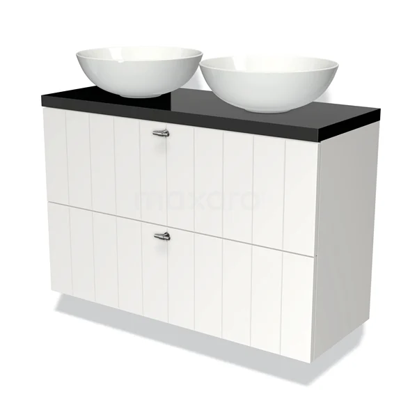 Modulo Plato Slim Badmöbel mit Aufsatzwaschbecken | 100 cm Matt Weiß Lamelle front Hochglanz Schwarz blatt 2 übereinanderliegende Schubladen