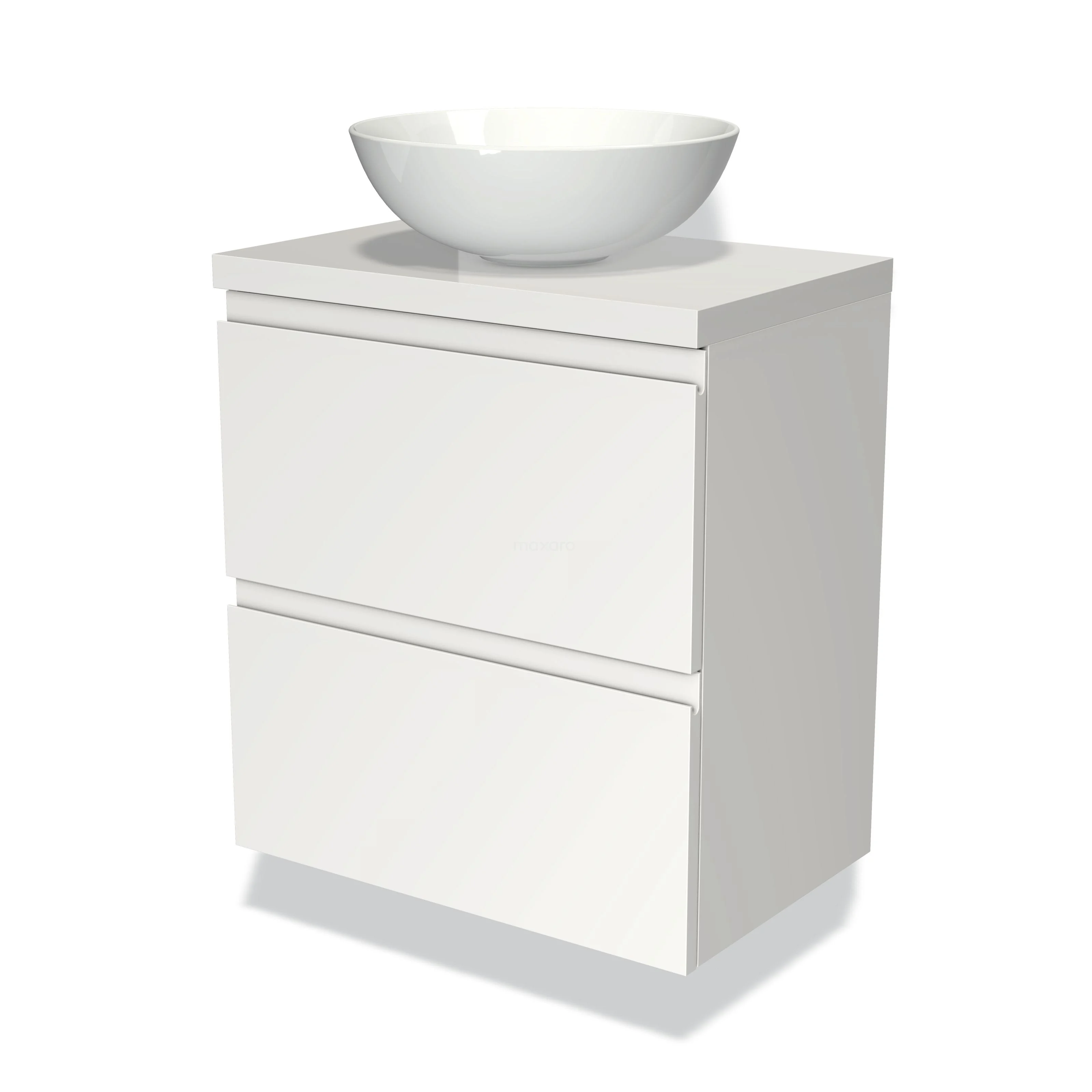 Badmöbel mit Konsole 60cm Modulo Plato Slim Matt Weiß 2 Schubladen Grifflos
