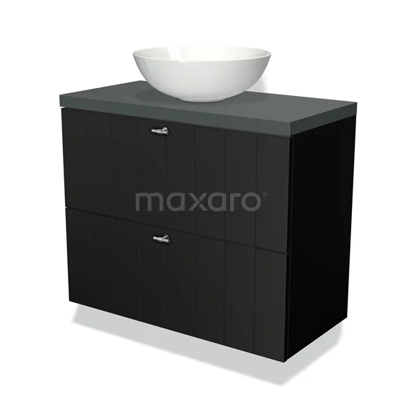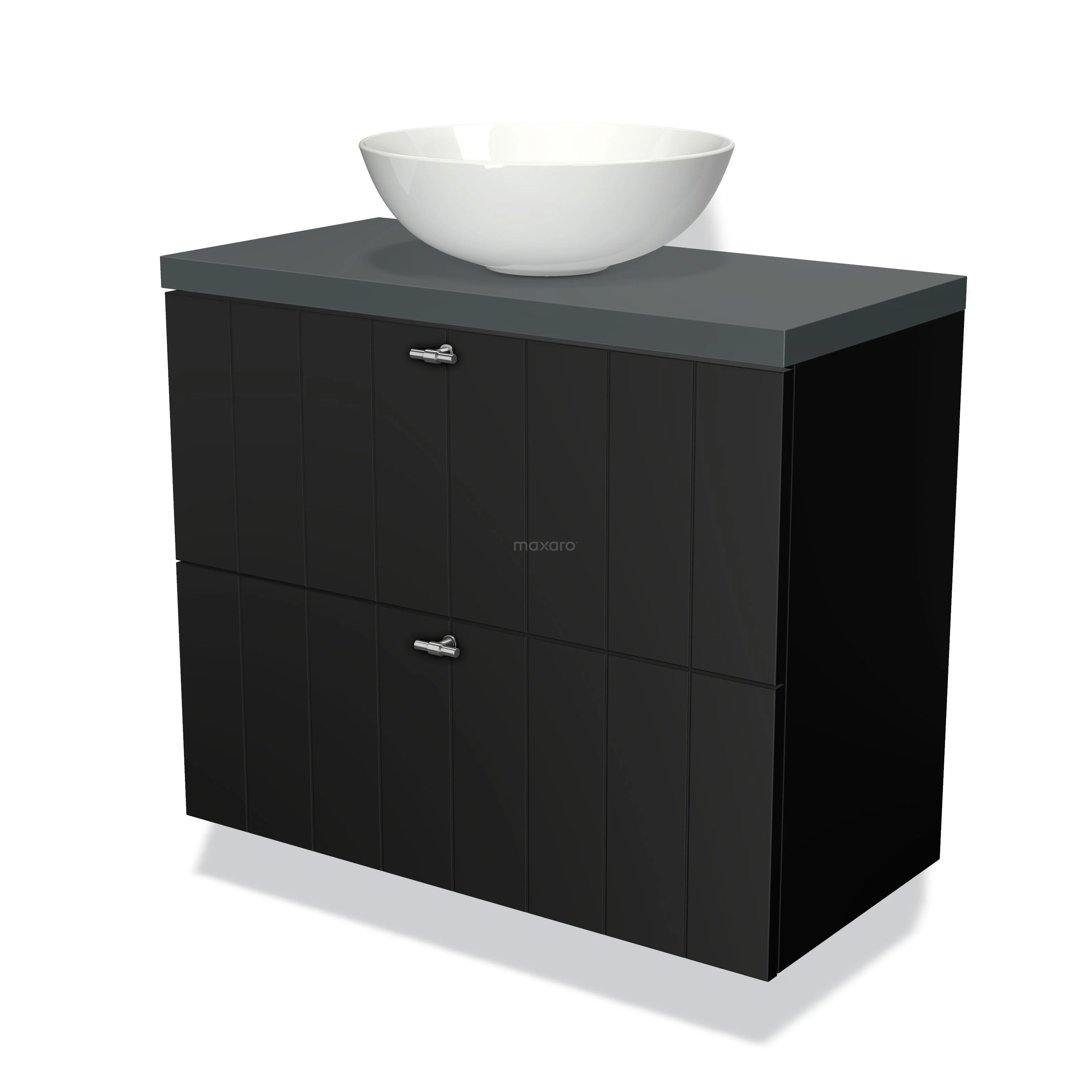 Badmöbel mit Konsole 80cm Modulo Plato Slim Matt Schwarz 2 Schubladen Laminat