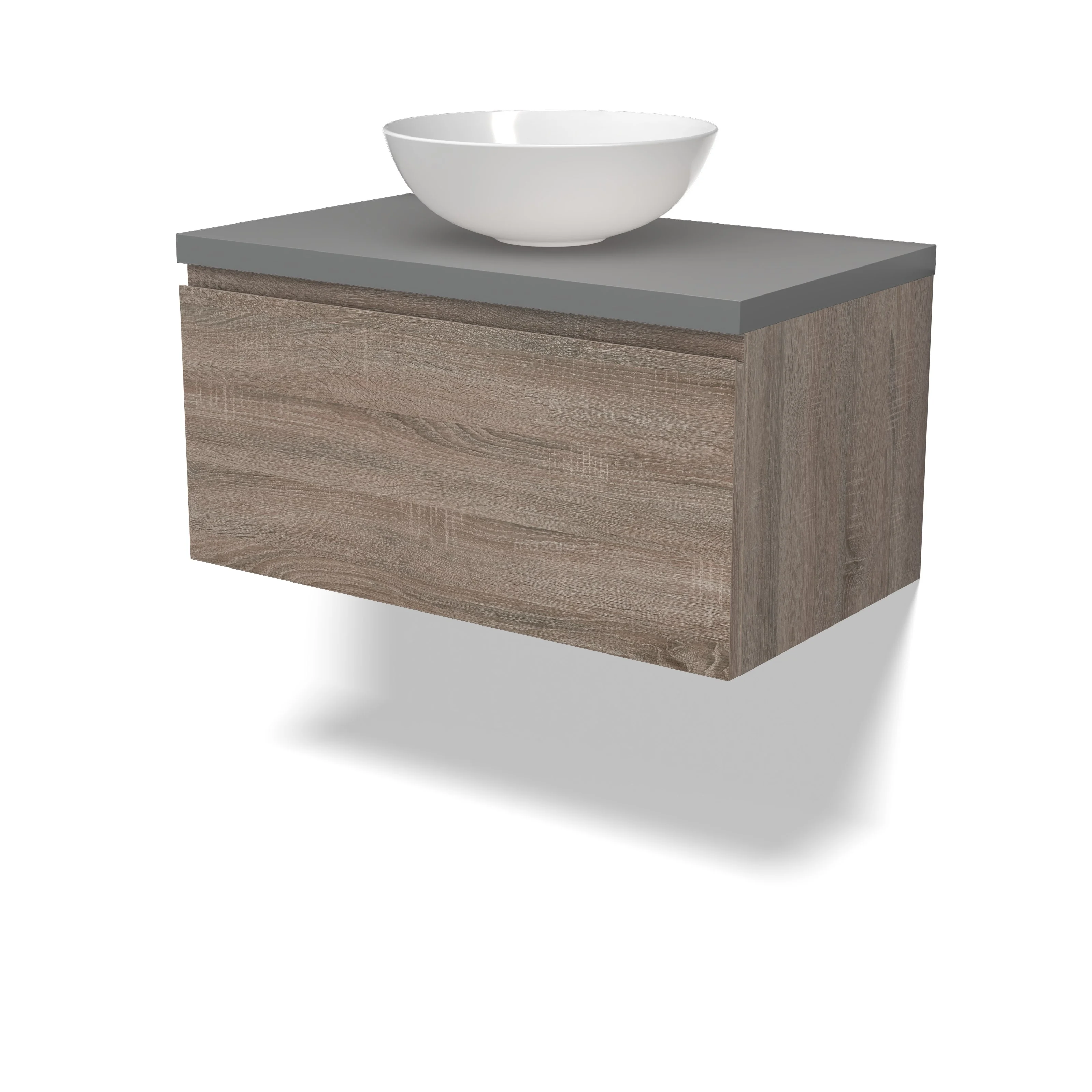 Modulo Plato Badmöbel mit Aufsatzwaschbecken | 80 cm Eiche Grifflos front Mittelgrau blatt 1 Schublade