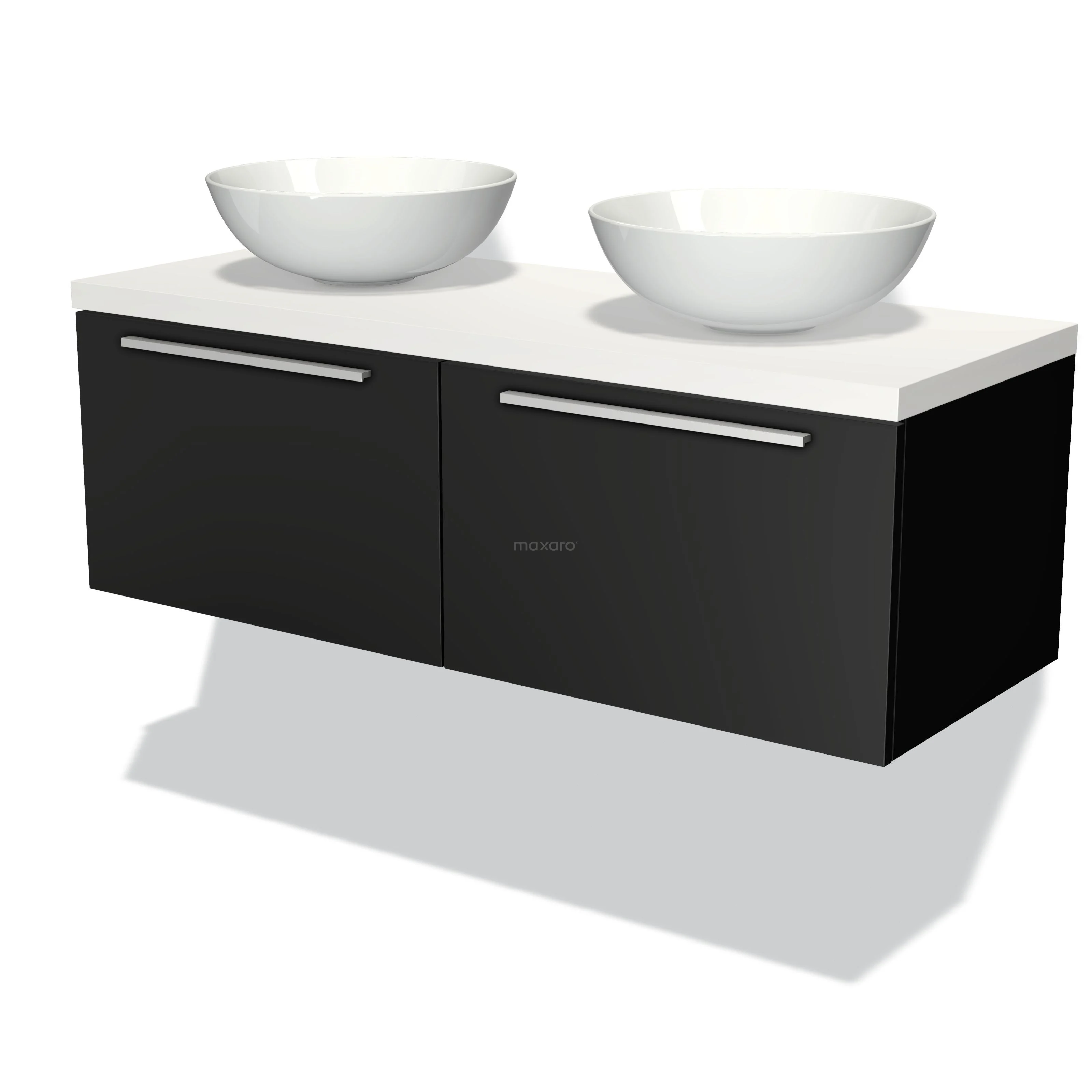 Badmöbelunterschrank mit Konsole 120cm Modulo Plato Matt Schwarz 2 Schubladen Flach Matt Weiß Platte