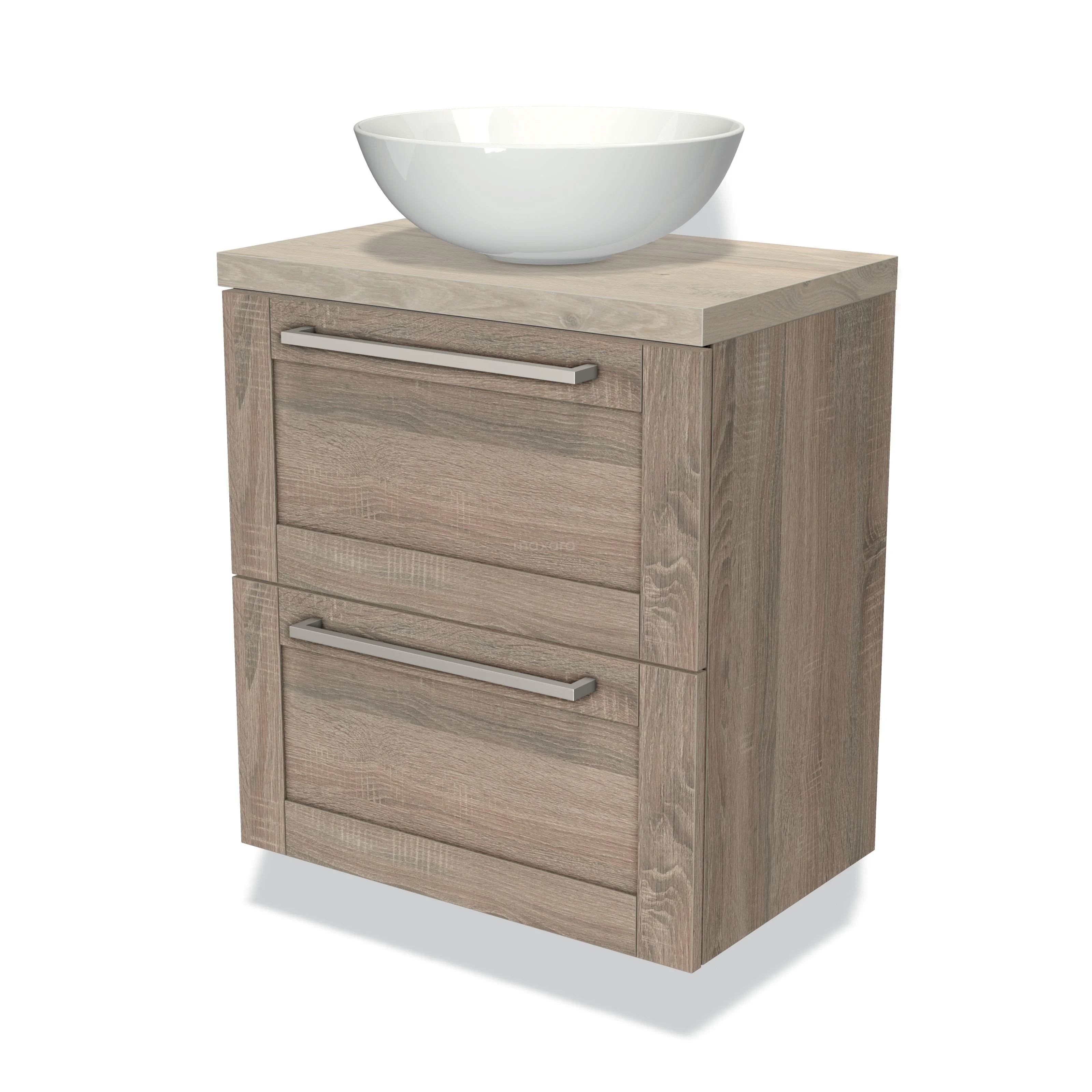 Badmöbel 60cm + 2 Haltegriffe + Aufsatzwaschbecken schlank