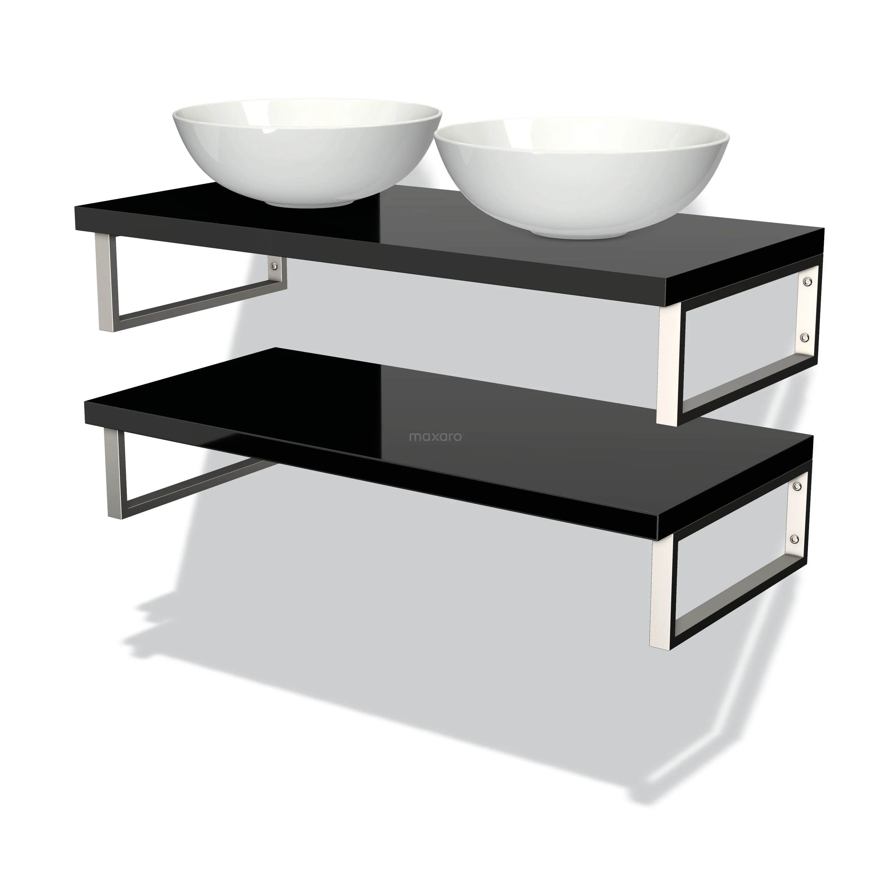 Hochglanz-Badmöbel für Aufsatzwaschbecken 100 cm Modulo Plato Hochglanz Schwarz 2 Waschtischplatten