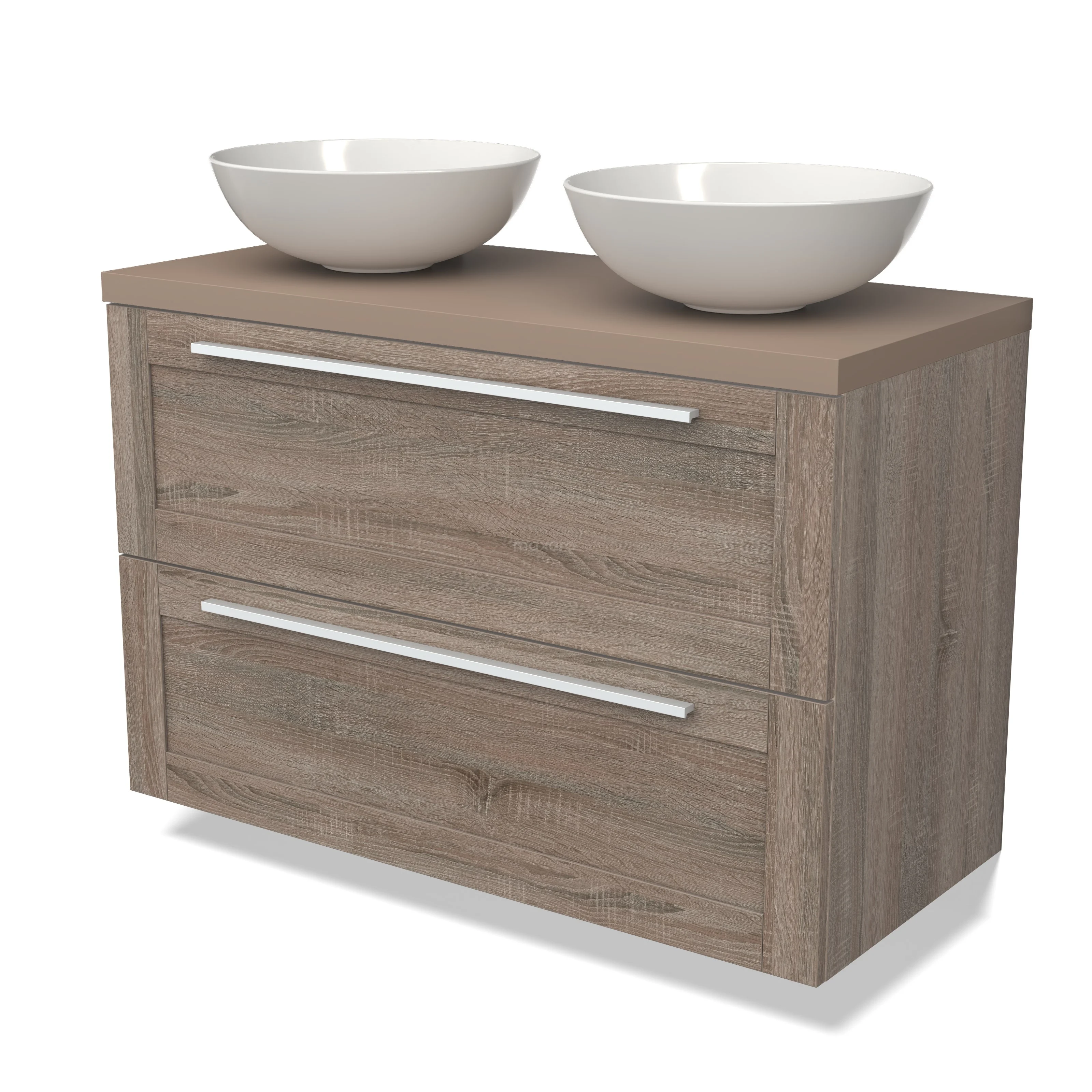 Modulo Plato Badmöbel mit Aufsatzwaschbecken | 100 cm Eiche Rahmen front Taupe blatt 2 übereinanderliegende Schubladen