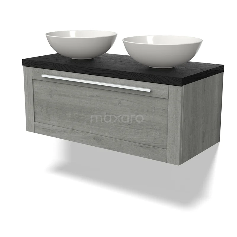Modulo Plato Badmöbel mit Aufsatzwaschbecken | 100 cm Graue Eiche Rahmen front Schwarze Eiche blatt 1 Schublade