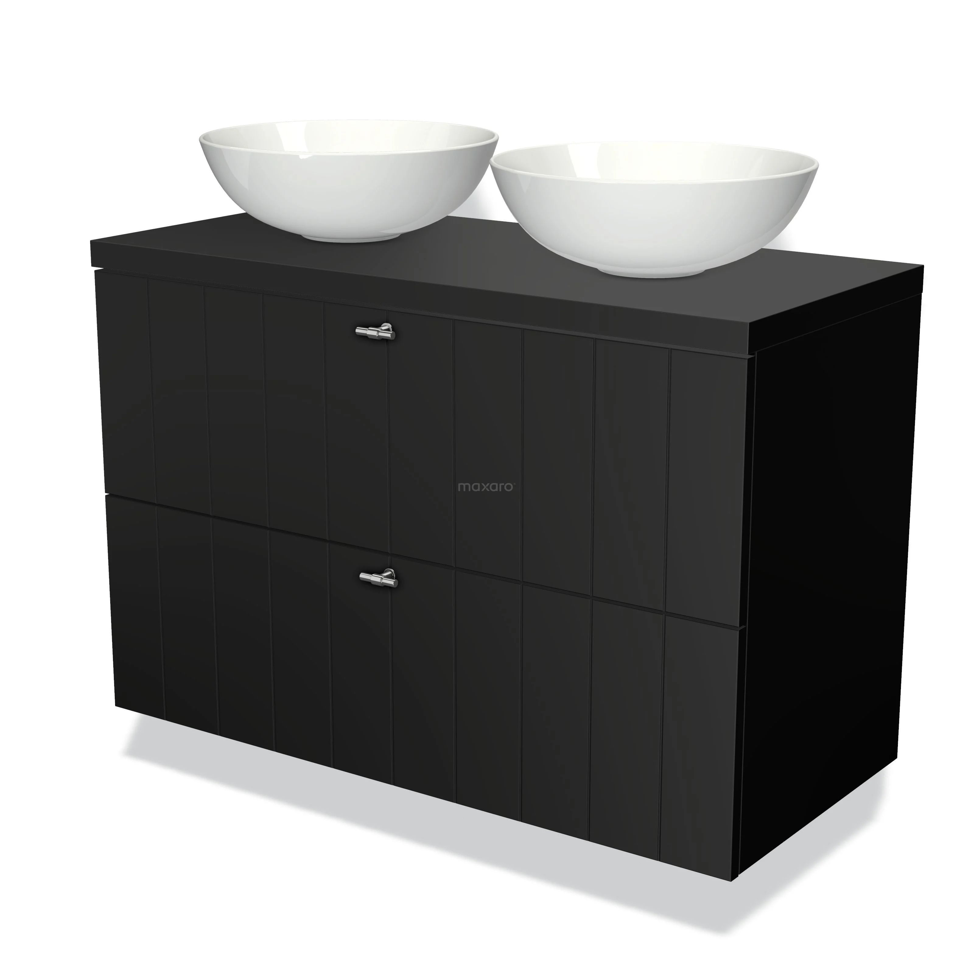Modulo Plato Badmöbel mit Aufsatzwaschbecken | 100 cm Matt Schwarz Lamelle front Matt Schwarz blatt 2 übereinanderliegende Schubladen