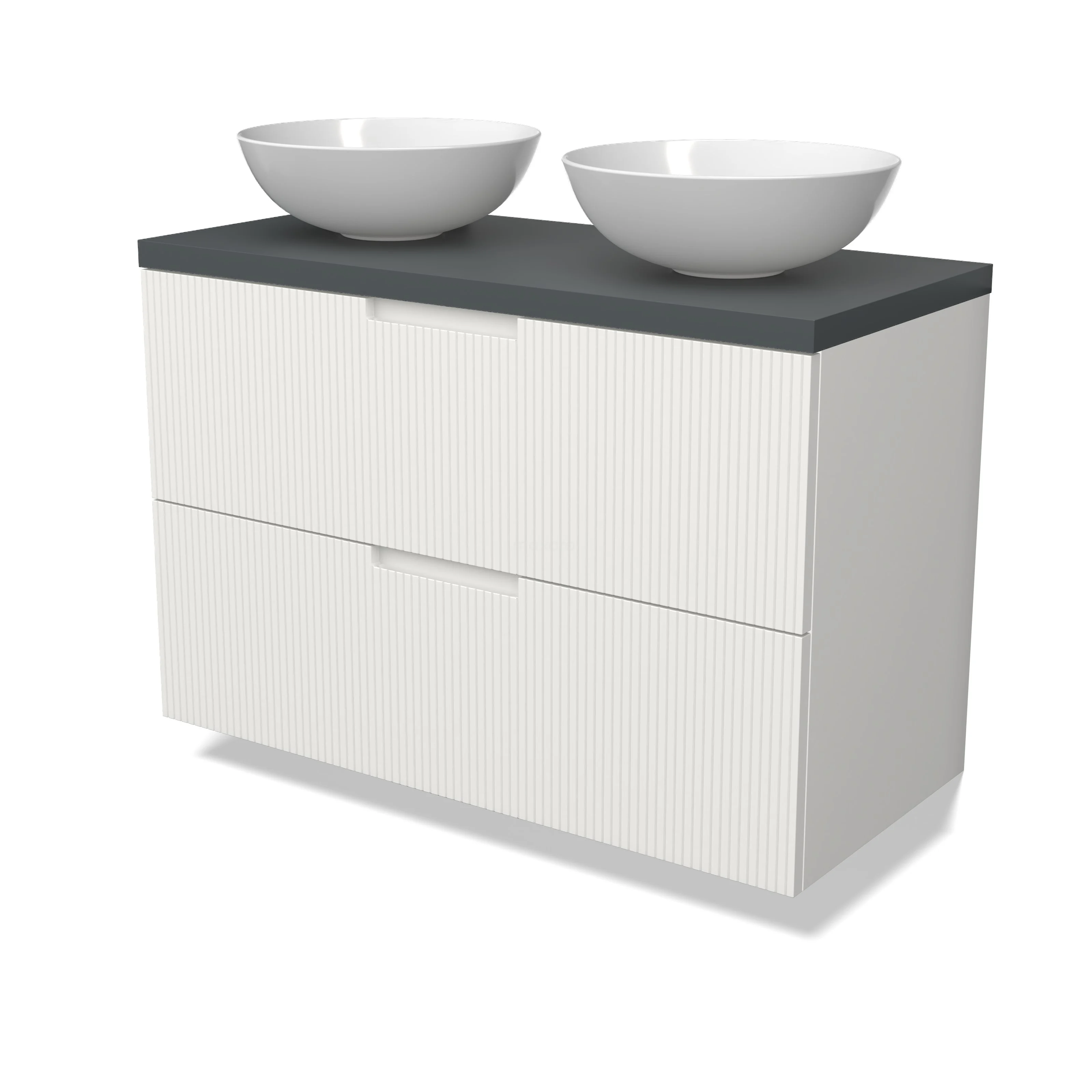 Modulo Plato Badmöbel mit Aufsatzwaschbecken | 100 cm Matt Weiß Linie front Dunkelgrau blatt 2 übereinanderliegende Schubladen