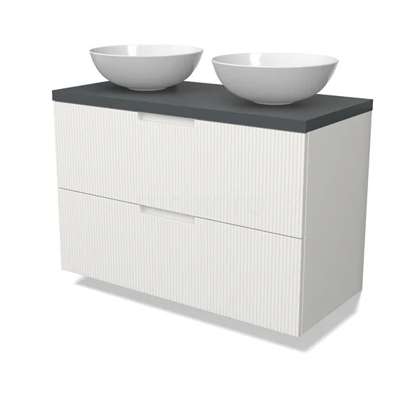 Modulo Plato Badmöbel mit Aufsatzwaschbecken | 100 cm Matt Weiß Linie front Dunkelgrau blatt 2 übereinanderliegende Schubladen BMK17-03059