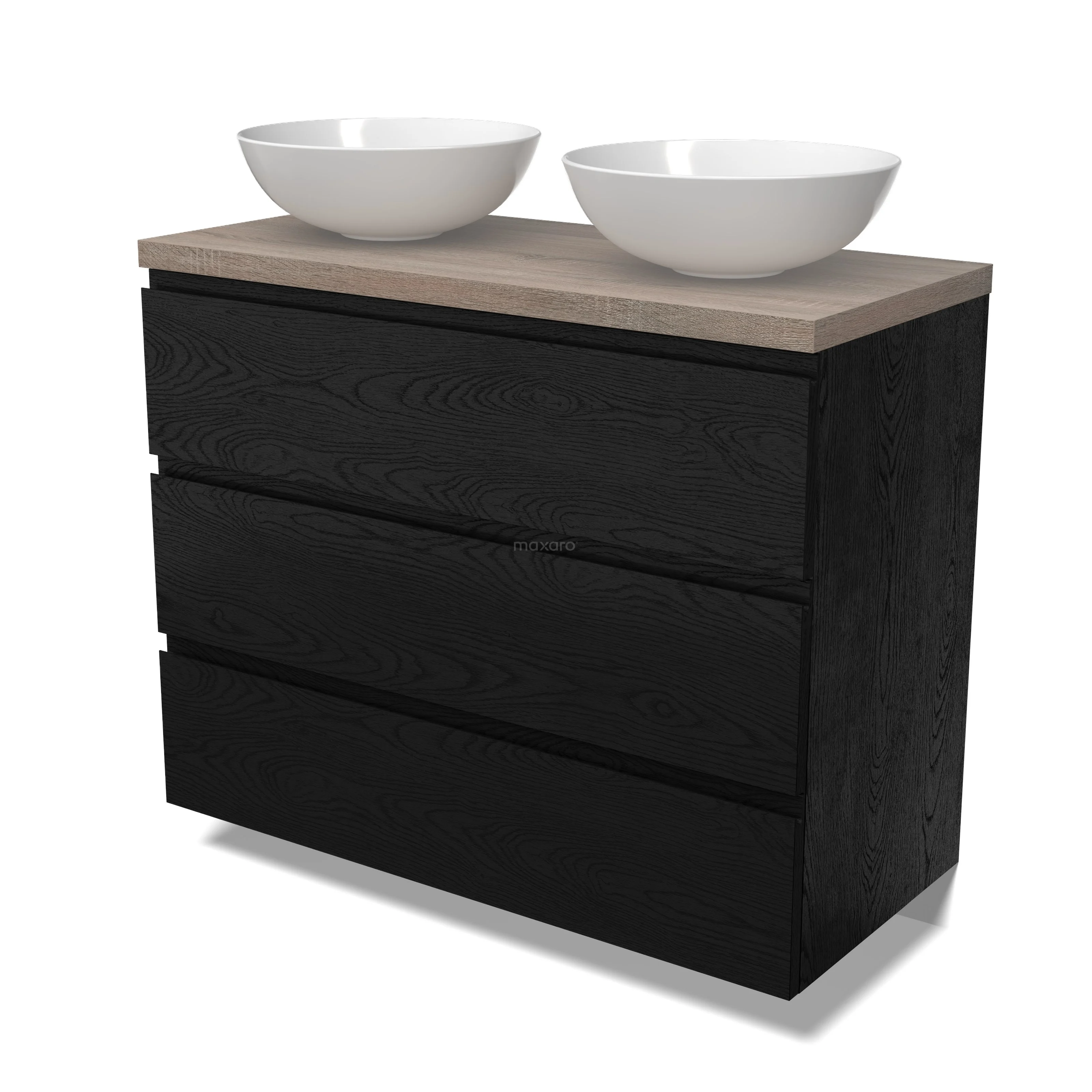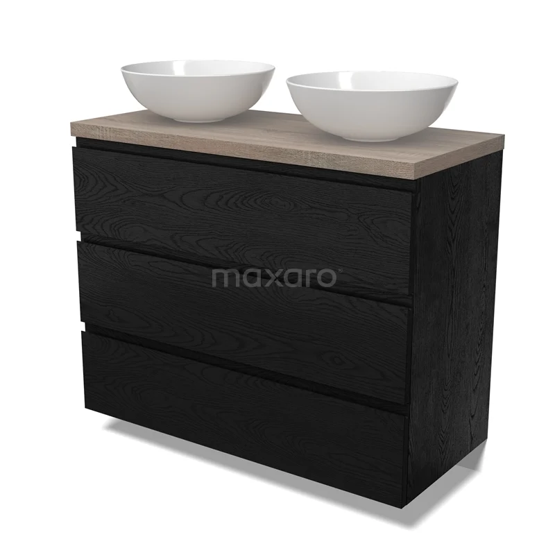 Modulo Plato Badmöbel mit Aufsatzwaschbecken | 100 cm Schwarze Eiche Grifflos front Eiche blatt 3 Schubladen BMK19-01684
