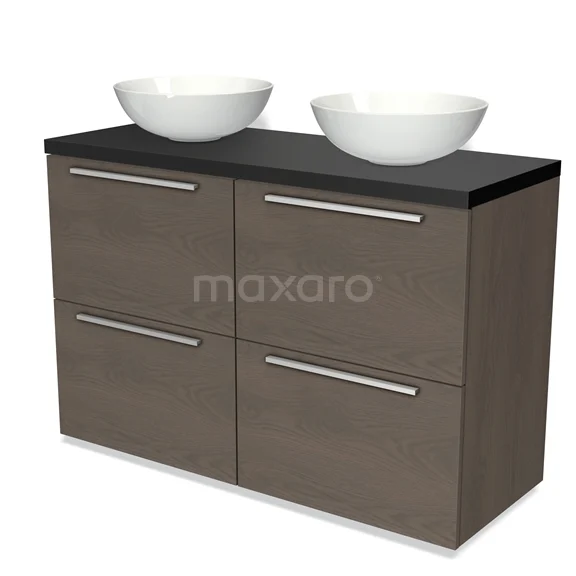 Modulo Plato Badmöbel mit Aufsatzwaschbecken | 120 cm Dunkelbraune Eiche Flach front Matt Schwarz blatt 4 hohe Schubladen