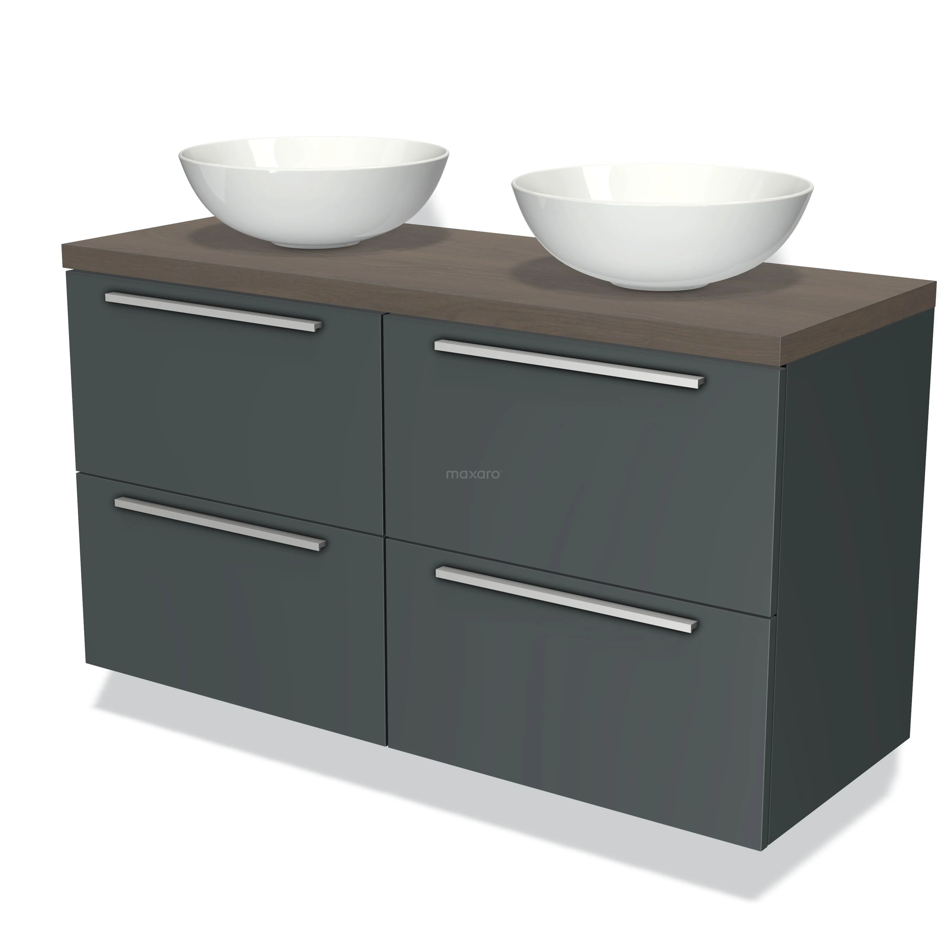 Modulo Plato Badmöbel mit Aufsatzwaschbecken | 120 cm Dunkelgrau Flach front Dunkelbraune Eiche blatt 4 Schubladen