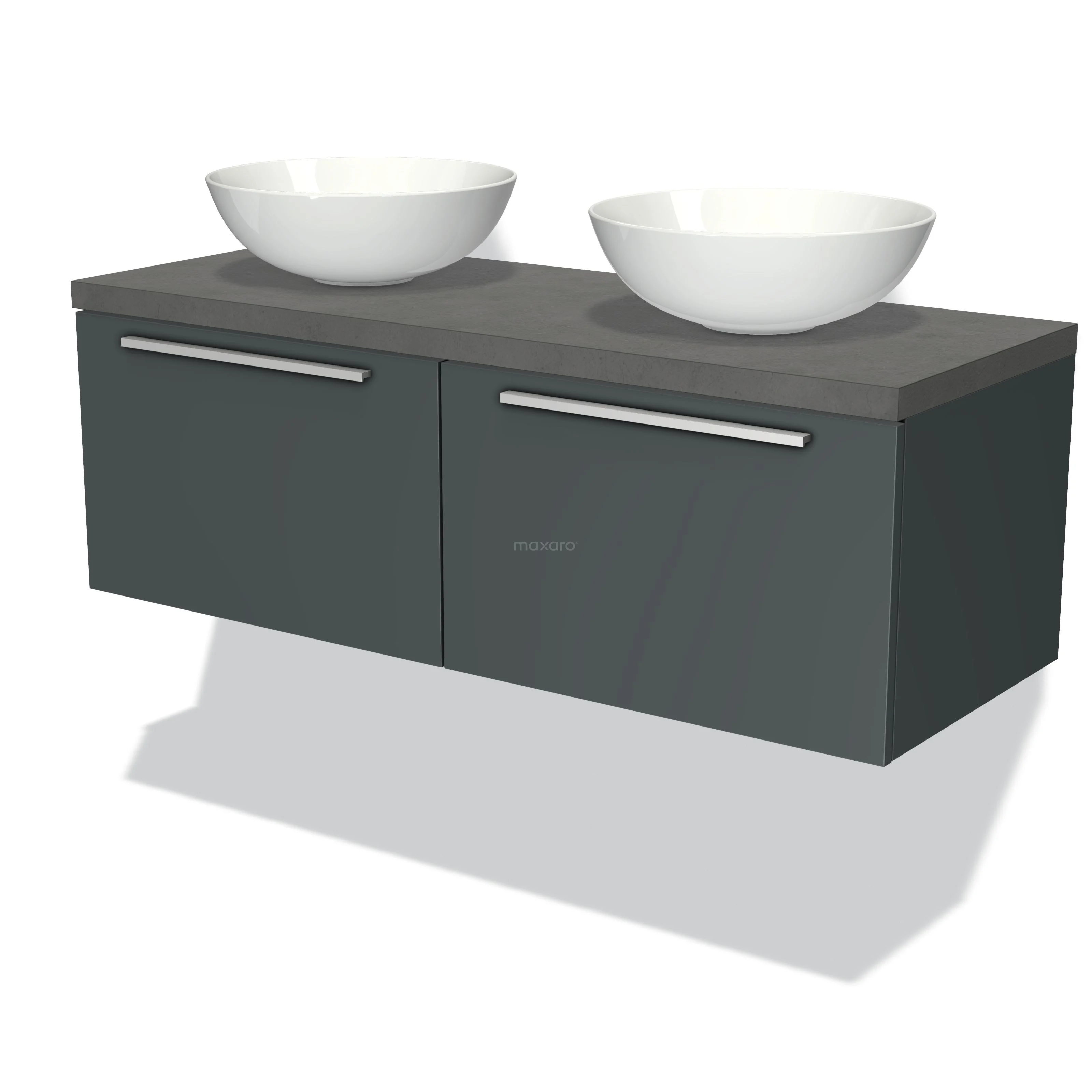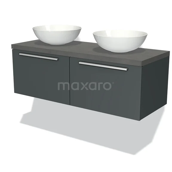 Modulo Plato Badmöbel mit Aufsatzwaschbecken | 120 cm Dunkelgrau Flach front Dunkelgrauer Beton blatt 2 nebeneinanderliegende Schubladen