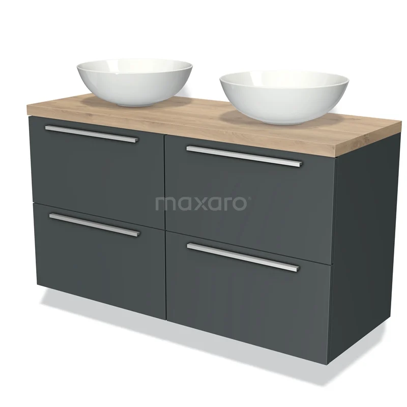 Modulo Plato Badmöbel mit Aufsatzwaschbecken | 120 cm Dunkelgrau Flach front Hellbraune Eiche blatt 4 Schubladen