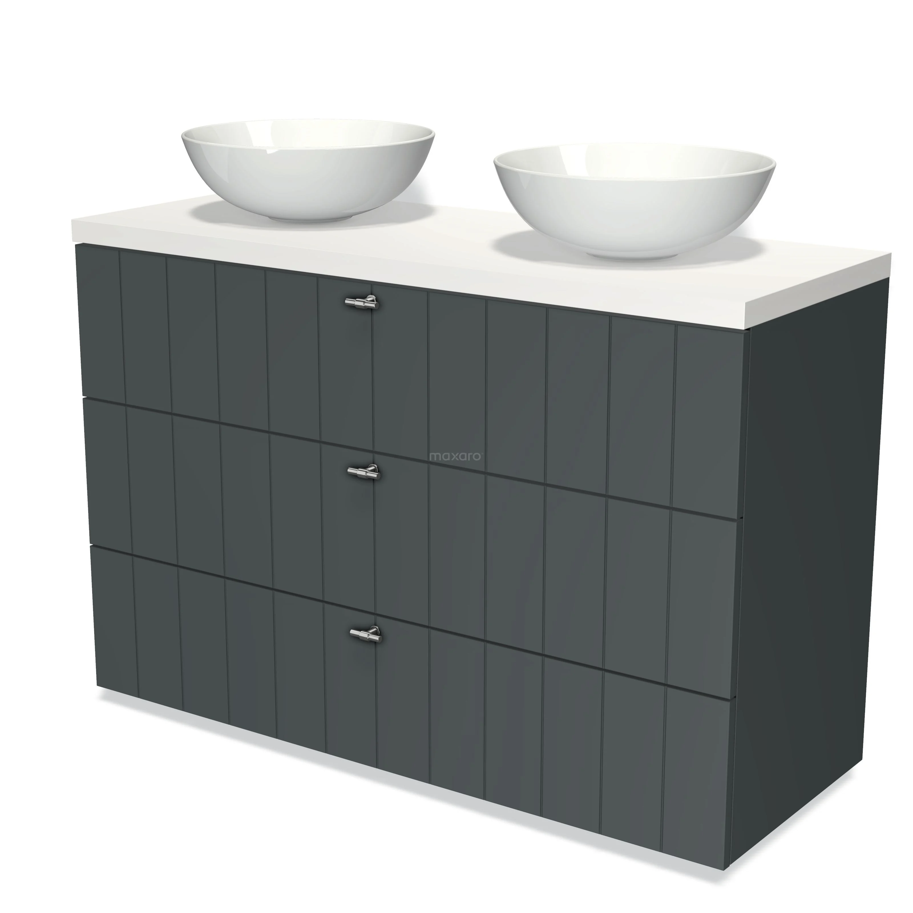 Modulo Plato Badmöbel mit Aufsatzwaschbecken | 120 cm Dunkelgrau Lamelle front Matt Weiß blatt 3 Schubladen