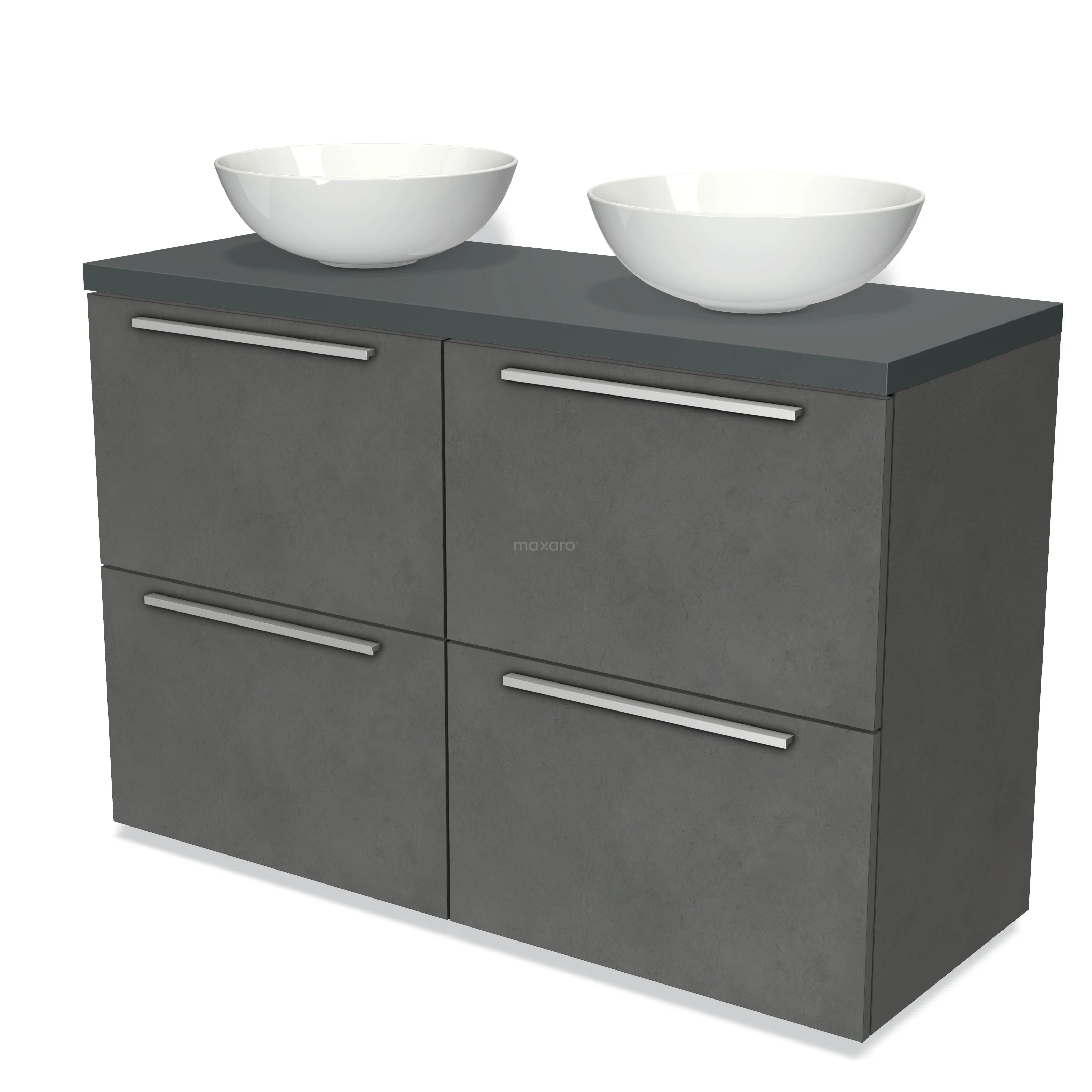 Modulo Plato Badmöbel mit Aufsatzwaschbecken | 120 cm Dunkelgrauer Beton Flach front Dunkelgrau blatt 4 hohe Schubladen