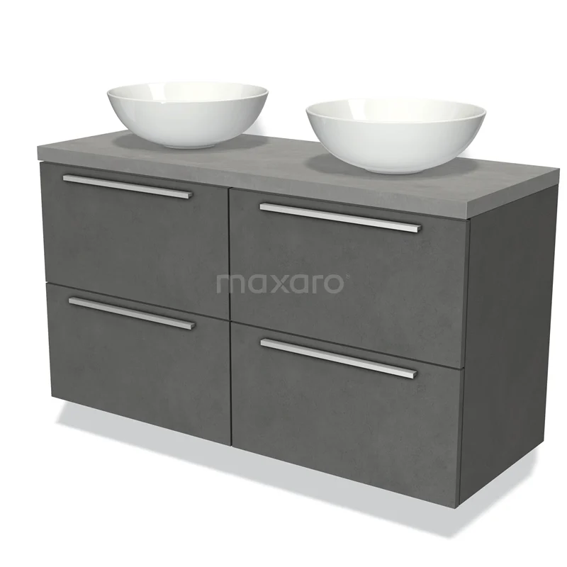 Modulo Plato Badmöbel mit Aufsatzwaschbecken | 120 cm Dunkelgrauer Beton Flach front Hellgrauer Beton blatt 4 Schubladen
